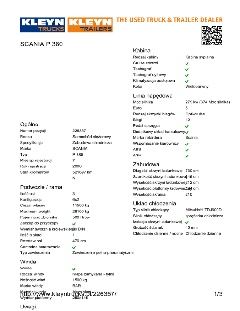 http://www.kleyntrucks.pl/226357/ 1/3 SCANIA P 380