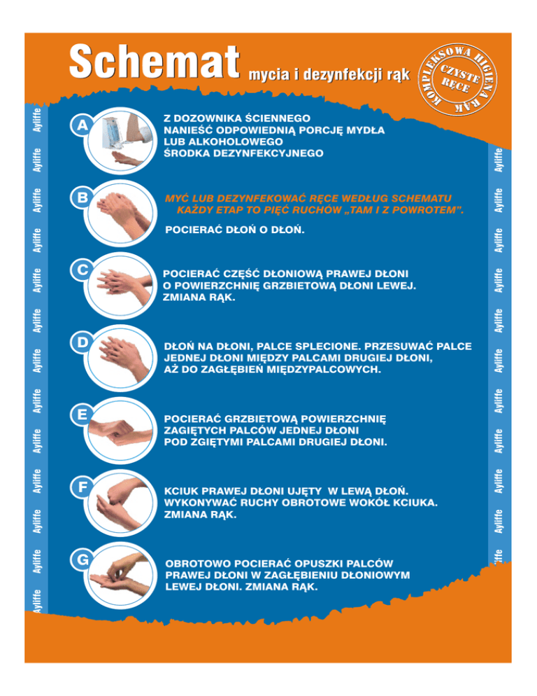POCIERAÆ CZÊŒÆ D£ONIOW¥ PRAWEJ D£ONI O POWIERZCHNIÊ GRZBIETOW¥ D£ONI LEWEJ. ZMIANA R¥K. G OBROTOWO POCIERAÆ OPUSZKI PALCÓW PRAWEJ D£ONI W ZAG£ÊBIENIU D£ONIOWYM LEWEJ D£ONI. ZMIANA R¥K. Ayliffe Ayliffe Ayliffe Ayliffe Ayliffe KCIUK PRAWEJ D£ONI UJÊTY W LEW¥ D£OÑ. WYKONYWAÆ RUCHY OBROTOWE WOKÓ£ KCIUKA. ZMIANA R¥K. Ayliffe Ayliffe Ayliffe Ayliffe Ayliffe F POCIERAÆ GRZBIETOW¥ POWIERZCHNIÊ ZAGIÊTYCH PALCÓW JEDNEJ D£ONI POD ZGIÊTYMI PALCAMI DRUGIEJ D£ONI. Ayliffe E D£OÑ NA D£ONI, PALCE SPLECIONE. PRZESUWAÆ PALCE JEDNEJ D£ONI MIÊDZY PALCAMI DRUGIEJ D£ONI, A¯ DO ZAG£ÊBIEÑ MIÊDZYPALCOWYCH. Ayliffe Ayliffe D Ayliffe Ayliffe Ayliffe C Ayliffe Ayliffe Ayliffe POCIERAÆ D£OÑ O D£OÑ. Ayliffe MYÆ LUB DEZYNFEKOWAÆ RÊCE WED£UG SCHEMATU - KA¯DY ETAP TO PIÊÆ RUCHÓW „TAM I Z POWROTEM”. Ayliffe B Ayliffe Z DOZOWNIKA ŒCIENNEGO NANIEŒÆ ODPOWIEDNI¥ PORCJÊ MYD£A LUB ALKOHOLOWEGO ŒRODKA DEZYNFEKCYJNEGO Ayliffe Ayliffe mycia i dezynfekcji r¹k A Ayliffe Ayliffe Schemat