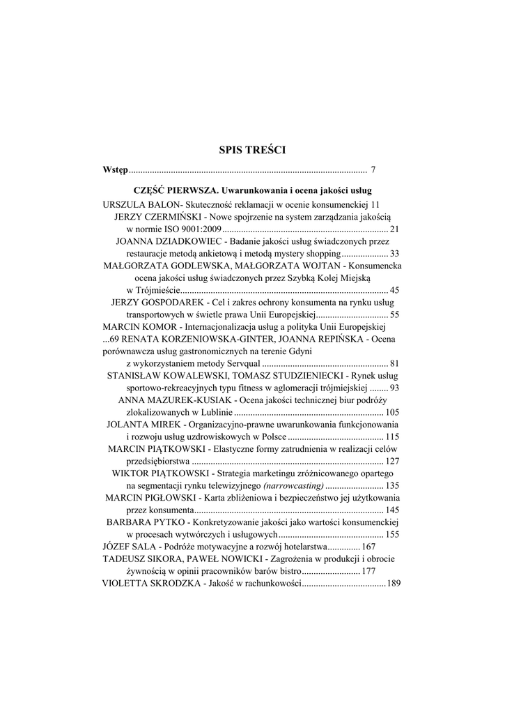 SPIS TREŚCI Wstęp ...................................................................................................... 7 CZĘŚĆ PIERWSZA. Uwarunkowania i ocena jakości usług URSZULA BALON- Skuteczność reklamacji w ocenie konsumenckiej 11 JERZY CZERMIŃSKI - Nowe spojrzenie na system zarządzania jakością w normie ISO 9001:2009 ....................................................................... 21 JOANNA DZIADKOWIEC - Badanie jakości usług świadczonych przez restauracje metodą ankietową i metodą mystery shopping .................... 33 MAŁGORZATA GODLEWSKA, MAŁGORZATA WOJTAN - Konsumencka ocena jakości usług świadczonych przez Szybką Kolej Miejską w Trójmieście......................................................................................... 45 JERZY GOSPODAREK - Cel i zakres ochrony konsumenta na rynku usług transportowych w świetle prawa Unii Europejskiej............................... 55 MARCIN KOMOR - Internacjonalizacja usług a polityka Unii Europejskiej ...69 RENATA KORZENIOWSKA-GINTER, JOANNA REPIŃSKA - Ocena porównawcza usług gastronomicznych na terenie Gdyni z wykorzystaniem metody Servqual ...................................................... 81 STANISŁAW KOWALEWSKI, TOMASZ STUDZIENIECKI - Rynek usług sportowo-rekreacyjnych typu fitness w aglomeracji trójmiejskiej ........ 93 ANNA MAZUREK-KUSIAK - Ocena jakości technicznej biur podróży zlokalizowanych w Lublinie ................................................................ 105 JOLANTA MIREK - Organizacyjno-prawne uwarunkowania funkcjonowania i rozwoju usług uzdrowiskowych w Polsce ......................................... 115 MARCIN PIĄTKOWSKI - Elastyczne formy zatrudnienia w realizacji celów przedsiębiorstwa .................................................................................. 127 WIKTOR PIĄTKOWSKI - Strategia marketingu zróżnicowanego opartego na segmentacji rynku telewizyjnego (narrowcasting) ......................... 135 MARCIN PIGŁOWSKI - Karta zbliżeniowa i bezpieczeństwo jej użytkowania przez konsumenta................................................................................. 145 BARBARA PYTKO - Konkretyzowanie jakości jako wartości konsumenckiej w procesach wytwórczych i usługowych ............................................. 155 JÓZEF SALA - Podróże motywacyjne a rozwój hotelarstwa .............. 167 TADEUSZ SIKORA, PAWEŁ NOWICKI - Zagrożenia w produkcji i obrocie żywnością w opinii pracowników barów bistro ......................... 177 VIOLETTA SKRODZKA - Jakość w rachunkowości .................................... 189 4 AGATA SZKIEL - Wykorzystanie modelu Kano do klasyfikacji wymagań stawianych usługom certyfikacyjnym ................................................... 197 JOANNA WIERZOWIECKA - Rozwój usług laboratoriów z elastycznym zakresem akredytacji ............................................................................. 207 ROMUALD ZABROCKI - Wybrane problemy segmentacji rynku usług żywieniowych........................................................................................ 217 CZĘŚĆ DRUGA. Komunikacja marketingowa na rynku usług AGNIESZKA BUDZIEWICZ-GUŹLECKA, ANNA DRAB-KUROWSKA - Rola nowoczesnych technologii w komunikacji marketingowej ........ 231 IWONA ESCHER - Wyróżniki marketingowego lub rynkowego zorientowania w przedsiębiorstwach prowadzących działalność usługową na terenie Polski .................................................................... 241 MAREK GRZYBOWSKI - Usługi internetowe w państwach regionu Morza Bałtyckiego. Analiza rynku ................................................................... 253 MAGDALENA KACHNIEWSKA - Wpływ tendencji występujących po stronie popytu na fenotyp współczesnej turystyki ............................ 265 MARIKA KLIMKIEWICZ, KAMILA PESZKO - Determinanty wyboru usług edukacyjnych na przykładzie szczecińskich szkół policealnych Cosinus .................................................................................................. 277 JOANNA PETRYKOWSKA - Zastosowanie badań marketingowych w przedsiębiorstwach usługowych funkcjonujących na terenie Polski...287 GRAŻYNA ROSA - Pozycjonowanie a siła marki na podstawie rankingu marek polskich ...................................................................................... 297 AGNIESZKA SMALEC - Kampanie reklamowe w komunikacji samorządu z otoczeniem .......................................................................................... 307 MARZENA WANAGOS - Wybrane elementy komunikacji marketingowej w organizacji Euro 2012 na przykładzie Gdańska ................................ 319 CZĘŚĆ TRZECIA. Zachowania konsumentów na rynku usług EWA BABICZ-ZIELIŃSKA, MARZENIA JEŻEWSKA-ZYCHOWICZ - Perspektywy wykorzystania żywności etnicznej w gastronomii ........ 331 ADAM BEREMBRUCH - Pozycja i świadomość konsumenta na rynku 5 usług finansowych - diagnoza i prespektywy ........................................ 341 ANNA BORAWSKA - Refleksyjne, nawykowe i nieplanowane zachowania konsumentów na rynku usług ............................................................... 355 WALDEMAR CUDNY, RAFAŁ ROUBA - Ekospa a zarządzanie doświadczeniem klienta ........................................................................ 365 ANNA DĄBROWSKA, MIROSŁAWA JANOŚ-KRESŁO - Single jako konsumenci usług rynkowych ze szczególnym uwzględnieniem usług turystycznych .............................................................................. 377 LESZEK GRACZ - Wybrane czynniki wpływające na zachowania e-konsumentów w Polsce ...................................................................... 389 MARZENA JEŻEWSKA-ZYCHOWICZ, ROBERT GAJDA - Obsługa kelnerska i dodatkowa oferta a gotowość konsumentów do korzystania z usług gastronomicznych ..................................................................... 399 ANETA KISIEL - Zmiany w zachowaniach 