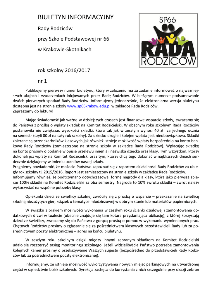 biuletyn informacyjny - Szkoła Podstawowa nr 66 w Krakowie