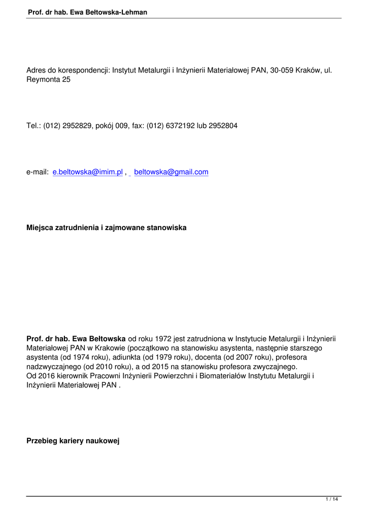 Prof. dr hab. Ewa Bełtowska-Lehman - Instytut Metalurgii i Inżynierii
