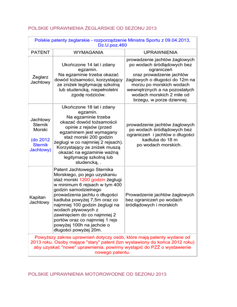 POLSKIE UPRAWNIENIA ŻEGLARSKIE OD SEZONU 2013 Polskie