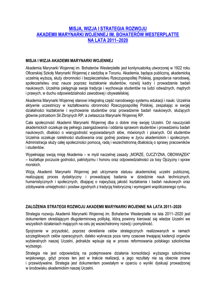 Misja, wizja i strategia rozwoju AMW na lata 2011
