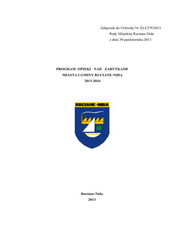 Załącznik do Uchwały Nr XLI/279/2013 Rady Miejskiej Ruciane-Nida z dnia 30 października 2013 PROGRAM OPIEKI NAD ZABYTKAMI MIASTA I GMINY RUCIANE-NIDA 2013-2016 Ruciane-Nida 2013 Program opieki nad zabytkami Miasta i Gminy Ruciane-Nida na lata 2013-2016 SPIS TREŚCI I. Wprowadzenie s. 4-5 II. Uregulowania formalno – prawne s. 5-12 II.1. Prawo samorządowe s. 5 II.2. Prawo w zakresie ochrony zabytków i opieki nad zabytkami s. 5-12 II.2.1. Wybrane przepisy ogólne oraz formy i sposoby ochrony zabytków i opieki nad zabytkami s. 5-8 II.2.2. Organy ochrony zabytków s. 8-11 II.2.3. Podstawy prawne sporządzania i główne cele gminnego programu opieki nad zabytkami III. s. 11-12 Założenia zawarte w strategicznych dokumentach wykorzystane do opracowywania programu opieki nad s. 12-34 zabytkami III.1. III.2. Założenia wynikające z tez do krajowego i wojewódzkiego programu ochrony zabytków i opieki nad zabytkami s. 12-16 Założenia zawarte w Narodowej Strategii Kultury na lata s.16-17 2004-2020 III.3. Program opieki nad zabytkami a Plan Zagospodarowania Przestrzennego Województwa Warmińsko-Mazurskiego oraz Strategia Rozwoju Województwa Warmińsko-Mazurskiego s. 17-20 III.4. Program opieki nad zabytkami a akty prawa miejscowego s. 20-34 IV. Chronione zabytki Miasta i Gminy Ruciane-Nida s. 34-42 IV.1 Zabytki wpisane do Rejestru Zabytków Województwa Warmińsko-Mazurskiego s. 34-35 IV.1.1. Rejestr zabytków nieruchomych. s.35-37 IV.1.2. Rejestr zabytków ruchomych. s. 37 IV.1.3. Rejestr zabytków archeologicznych s. 37 IV.2. Zabytki wpisane do Gminnej Ewidencji Zabytków s. 37-38 IV.3 Placówki muzealne, wystawiennicze i izby tradycji s. 39-41 1 Program opieki nad zabytkami Miasta i Gminy Ruciane-Nida na lata 2013-2016 IV.4. V. Ochrona krajobrazu kulturowego miasta i gminy w dokumentach prawa miejscowego s. 41-42 Charakterystyka zasobów kulturowych Miasta i Gminy s. 42-64 Ruciane-Nida V.1. Rys historyczny s. 42-57 V.1.1. Pradzieje s. 42-44 V.1.2. Osadnictwo w XIII-XVI wieku s. 44-47 V.1.3. Przemiany w XVII-XVIII wieku s. 47-49 V.1.4. V.1.5. V.1.6. s. 50-53 Wiek XIX Od I wojny do końca II wojny światowej V.2. V.3. VI.1. VI.2. VI.3. Okres od roku 1945 do czasów nam współczesnych Historyczne układy ruralistyczne Charakterystyka zasobu obiektów zabytkowych VIII.2 . VIII.3. s. 65 s. 65-66 s. 66-67 Współczesne funkcje obiektów zabytkowych s. 67-70 dokumentacji konserwatorskiej Czynniki wpływające na środowisko kulturowe Miasta i VIII.1. s. 65-67 Ocena stanu i funkcjonowania środowiska kulturowego Ocena stanu technicznego obiektów zabytkowych i stanu VIII. s. 58-60 s. 60-64 Historyczny układ urbanistyczny Ochrona krajobrazu kulturowego miasta i gminy VII. s.55-57 s.57-58 V.4. VI. s. 53-54 Gminy Ruciane-Nida s. 70-72 s. 70-71 Założenia programowe ochrony zabytków Miasta i Gminy Ruciane-Nida s. 71-72 Główne cele polityki gminnej związane z ochroną zabytków Działania związane z opieką nad zabytkami oraz ochroną krajobrazu kulturowego Miasta i Gminy Ruciane-Nida IX. s. 72 Działania informacyjne, popularyzacyjne i edukacyjne 2 Program opieki nad zabytkami Miasta i Gminy Ruciane-Nida na lata 2013-2016 związane z promocją zabytków i walorów miejskiej X. przestrzeni kulturowej Miasta i Gminy Ruciane-Nida Realizacja i finansowanie przez miasto i gminę zadań z XI. s. 73-74 s. 74-78 zakresu ochrony zabytków Zadania miasta i gminy związane z ochroną środowiska w s.79-87 zakresie konserwacji zieleni zabytkowej Wykazy zabytków wpisanych do Rejestru Zabytków Województwa Warmińsko-Mazurskiego s. 79-82 TABELA 1. MIASTO I GMINA RUCIANE-NIDA. WYKAZ ZABYTKÓW NIERUCHOMYCH. REJESTR ZABYTKÓW WOJEWÓDZTWA WARMIŃSKO-MAZURSKIEGO XII. s. 83-87 TABELA 2. MIASTO I GMINA RUCIANE-NIDA. WYKAZ ZABYTKÓW RUCHOMYCH. REJESTR ZABYTKÓW WOJEWÓDZTWA s. 88-106 WARMIŃSKO-MAZURSKIEGO . Wykazy zabytków ujętych w Gminnej Ewidencji Zabytków (GEZ) TABELA 3. s. 88-104 MIASTO I GMINA RUCIANE -NIDA. WYKAZ ZABYTKÓWNIERUCHOMYCH UJĘTYCH W GMINNEJ EWIDENCJI ZABYTKÓW s.105-106 TABELA 4 MIASTO I GMINA RUCIANE-NIDA. WYKAZ STANOWISK ARCHEOLOGICZNYCH UJĘTYCH W GMINNEJ EWIDENCJI ZABYTKÓW 3 Program opieki nad zabytkami Miasta i Gminy Ruciane-Nida na lata 2013-2016 I. Wprowadzenie Program opieki nad zabytkami Miasta i Gminy Ruciane-Nida jest dokumentem pomocniczym w pracy samorządu i określa zadania w zakresie podanym w tytule na lata 2013-2016. Zadania te dotyczą sfery szeroko rozumianego dziedzictwa kulturowego na szczeblu gminnym. Działania związane z rozwojem miasta i gminy muszą opierać się przede wszystkim na jego zasobach i walorach. Istotne jest zatem wykorzystanie w polityce gminnej zarówno zasobów środowiska przyrodniczego jak i środowiska kulturowego. Rozwój miasta i gminy musi uwzględniać pielęgnowanie jego tożsamości kulturowej przejawiającej się między innymi w dziedzictwie materialnym. Krajobraz kulturowy i zabytki stanowią interesującą odmienność regionu, która odpowiednio wypromowana może podnieść jego atrakcyjność nie tylko w dziedzinie rozwoju turystyki, ale także atrakcyjność ekonomiczną w wymiarze ogólnym i lokalnym. Jakość przestrzeni kulturowej gminy przekłada się również na podniesienie poziomu życia mieszkańców. Program opieki nad zabytkami Miasta i Gminy Ruciane-Nida dotyczy zatem takiej sfery działań, która wpływa na poprawę funkcjonowania materialnego dziedzictwa kulturowego i która decyduje w znacznym stopniu o stanie zasobów i walorach gminy. Program jest komplementarny ze Strategią Rozwoju Województwa Warmińsko-Mazurskiego; Strategią Rozwoju Społeczno-Gospodarczego Województwa Warmińsko-Mazurskiego do roku 2020., jest też zgodny z prawem miejscowym, a w szczególności Strategią zrównoważonego rozwoju miasta i gminy Ruciane-Nida do roku 2015 przyjęta uchwałą Nr XXII/43/2008 Rady Miejskiej Ruciane-Nida z dnia 28.05.2008 r.; z planami zagospodarowania przestrzennego oraz Studium Uwarunkowań i Ki