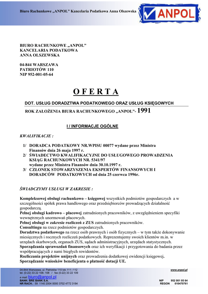 O F E R T A - Biuro Rachunkowe "ANPOL"