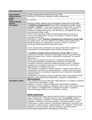 Informacje ogólne Tytuł zasad Kodeks postępowania dostawców