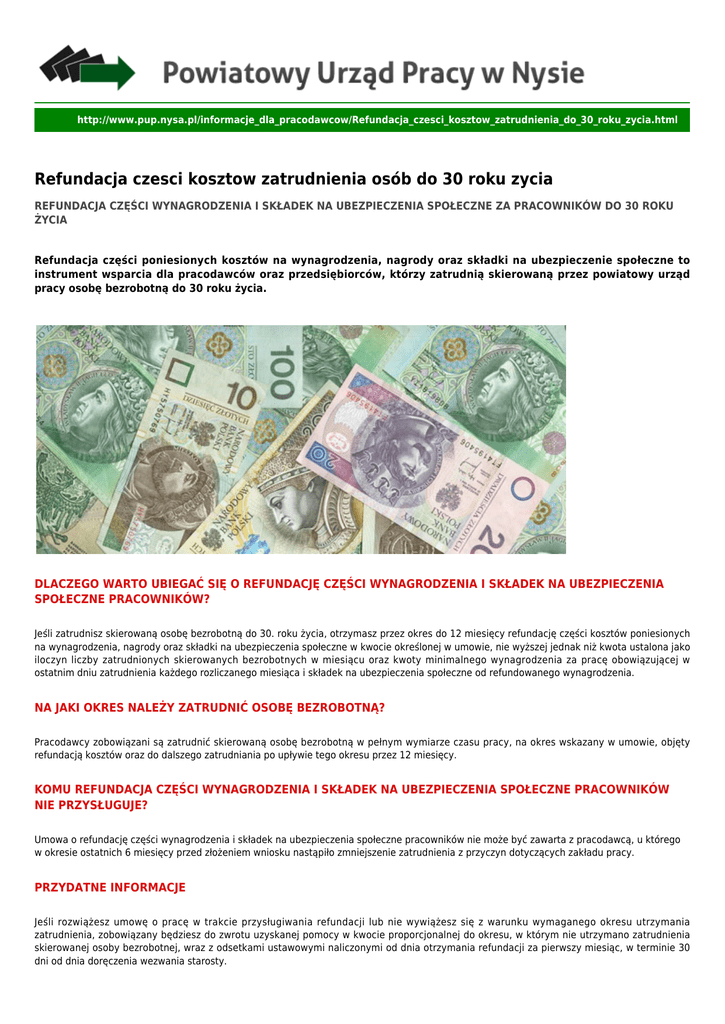 Refundacja czesci kosztow zatrudnienia osób do 30 roku zycia