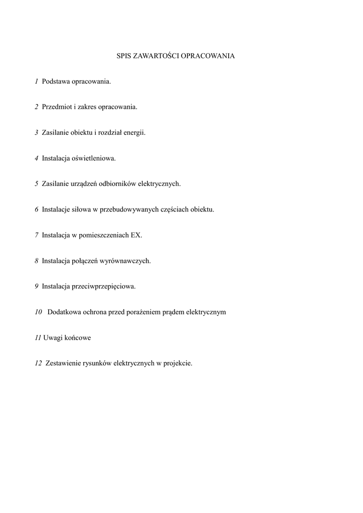 SPIS ZAWARTOŚCI OPRACOWANIA 1 Podstawa opracowania. 2 Przedmiot i zakres opracowania. 3 Zasilanie obiektu i rozdział energii. 4 Instalacja oświetleniowa. 5 Zasilanie urządzeń odbiorników elektrycznych. 6 Instalacje siłowa w przebudowywanych częściach obiektu. 7 Instalacja w pomieszczeniach EX. 8 Instalacja połączeń wyrównawczych. 9 Instalacja przeciwprzepięciowa. 10 Dodatkowa ochrona przed porażeniem prądem elektrycznym 11 Uwagi końcowe 12 Zestawienie rysunków elektrycznych w projekcie. 1. Podstawa opracowania: Zlecenie Inwestora Rzuty architektoniczne otrzymane od Inwestora Obowiązujące przepisy i normy. PN-IEC 60364-1 Instalacje elektryczne w obiektach budowlanych. Zakres , przedmiot i wymagania podstawowe. PN-IEC 60364-3 Instalacje elektryczne w obiektach budowlanych. Ustalenie ogólnych charakterystyk PN-IEC 60364-4-41 Instalacje elektryczne w obiektach budowlanych . Ochrona dla zapewnienia bezpieczeństwa. Ochrona przeciwporażeniowa. PN-IEC 60364-4-42 Instalacje elektryczne w obiektach budowlanych . Ochrona dla zapewnienia bezpieczeństwa. Ochrona przed skutkami oddziaływania cieplnego. PN-IEC 60364-4-43 Instalacje elektryczne w obiektach budowlanych . Ochrona dla zapewnienia bezpieczeństwa. Ochrona przed prądem przetężeniowym. + PN-IEC 60364-4-442 Instalacje elektryczne w obiektach budowlanych . Ochrona dla zapewnienia bezpieczeństwa. Ochrona przed przepięciami. Ochrona instalacji niskiego napięcia przed przejściowymi przepięciami i uszkodzeniami przy doziemieniach w sieci wysokiego napięcia. PN-IEC 60364-4-443 Instalacje elektryczne w obiektach budowlanych . Ochrona dla zapewnienia bezpieczeństwa. Ochrona przed przepięciami. Ochrona przed przepięciami atmosferycznymi lub łączeniowymi. PN-IEC 60364-4-45 Instalacje elektryczne w obiektach budowlanych . Ochrona dla zapewnienia bezpieczeństwa. Ochrona przed przepięciami. Ochrona przed obniżeniem napięcia. PN-IEC 60364-4-46 Instalacje elektryczne w obiektach budowlanych . Ochrona dla zapewnienia bezpieczeństwa. Odłączanie izolacyjne i łączenie. PN-IEC 60364-4-47 Instalacje elektryczne w obiektach budowlanych . Ochrona dla zapewnienia bezpieczeństwa. Stosowanie środków ochrony zapewniających bezpieczeństwo. Postanowienia ogólne. Środki ochrony przed porażeniem prądem elektrycznym. PN-IEC 60364-4-473 Instalacje elektryczne w obiektach budowlanych . Ochrona dla zapewnienia bezpieczeństwa. Stosowanie środków ochrony zapewniających bezpieczeństwo. Środki ochrony przed prądem przetężeniowym PN-IEC 60364-4-481 Instalacje elektryczne w obiektach budowlanych . Ochrona dla zapewnienia bezpieczeństwa. Stosowanie środków ochrony zapewniających bezpieczeństwo. Dobór środków ochrony przeciwporażeniowej w zależności od wpływów zewnętrznych PN-IEC 60364-4-482 Instalacje elektryczne w obiektach budowlanych . Ochrona dla zapewnienia bezpieczeństwa. Stosowanie środków ochrony zapewniających bezpieczeństwo. Dobór środków ochrony przeciwporazeniowej w zależności od wpływów zewnętrznych. Ochrona przeciwpożarowa. PN-IEC 60364-5-51 Instalacje elektryczne w obiektach budowlanych . Dobór i montaż wyposażenia elektrycznego. Postanowienia ogólne. PN-IEC 60364-5-52 Instalacje elektryczne w obiektach budowlanych . Oprzewodowanie. PN-IEC 60364-5-523 Instalacje elektryczne w obiektach budowlanych . Obciążalność prądowa długotrwała przewodów PN-IEC 60364-5-53 Instalacje elektryczne w obiektach budowlanych . Dobór i montaż wyposażenia elektrycznego. Aparatura łączeniowa i sterownicza. PN-IEC 60364-5-537 Instalacje elektryczne w obiektach budowlanych . Dobór i montaż wyposażenia elektrycznego. Aparatura rozdzielcza i sterownicza. Urządzenia do odłączania izolacyjnego i łączenia PN-IEC 60364-5-54 Instalacje elektryczne w obiektach budowlanych . Dobór budowlanych . Dobór i montaż wyposażenia elektrycznego. Uziemienia i przewody ochronne PN-IEC 60364-5-56 Instalacje elektryczne w obiektach i montaż wyposażenia elektrycznego. Instalacje bezpieczeństwa PN-IEC 60364-5-61 Instalacje elektryczne w obiektach budowlanych . Sprawdzenie odbiorcze PN-IEC 60364-5-706 Instalacje elektryczne w obiektach budowlanych . Wymagania dotyczące specjalistycznych instalacji lub lokalizacji. Przestrzenie ograniczone powierzchniami przewodzącymi. PN-IEC 60364-5-707 Instalacje elektryczne w obiektach budowlanych . Wymagania dotyczące specjalistycznych instalacji lub lokalizacji. Wymagania dotyczące uziemień instalacji urządzeń przetwarzania danych PN-92/E-01200/... Symbole graficzne stosowane w schematach. PN-92/E-05031 Klasyfikacja urządzeń elektrycznych i elektronicznych z punktu widzenia ochrony przed porażeniem prądem elektrycznym PN-92/E-08106 Stopnie ochrony zapewniane przez obudowy PN-IEC 61024-1 Ochrona odgromowa obiektów budowlanych .Zasady ogólne. PN-86/E-05003/02 Ochrona odgromowa obiektów budowlanych .Ochrona podstawowa. PN-86/E-05003/03 Ochrona odgromowa obiektów budowlanych .Ochrona obostrzona. PN-92/E-08106 Stopnie ochrony zapewniane przez obudowy N SEP-E-004 Elektroenergetyczne i Sygnalizacyjne Linie kablowe Projektowanie i Budowa PN-EN-12464-I Oświetlenie miejsca pracy-część I: Miejsce pracy wewnątrz pomieszczeń PN-EN-1838 Oświetlenie awaryjne PN-ISO 8501-1 Przygotowanie podłoży stalowych przed układaniem farb ISO 12944-1do 8 Farby i lakiery Zabezpieczenia przeciwkorozyjne konstrukcji stalowych Wytyczne zakładu Wody i Korozji Głównego Instytutu Górnictwa symbol 101.052 + 2. Przedmiot i zakres opracowania. W projekcie ujęto: rozdzielnicę RG1 i RG2 – akumulatorowni, instalację oświetlenia, instalację oświetlenia awaryjnego, instalację siłową, instalację połączeń wyrównawczych, instalację przeciwprzepięciową. 3. Zasilanie obiektu i rozdział energii. Istniejący obiekt jest to obiekt parterowy potocznie nazywany akumulatorownia z powodu jego przeznaczenia. Obiekt jest zasilany z istniejącego złącza ZK pokazanego