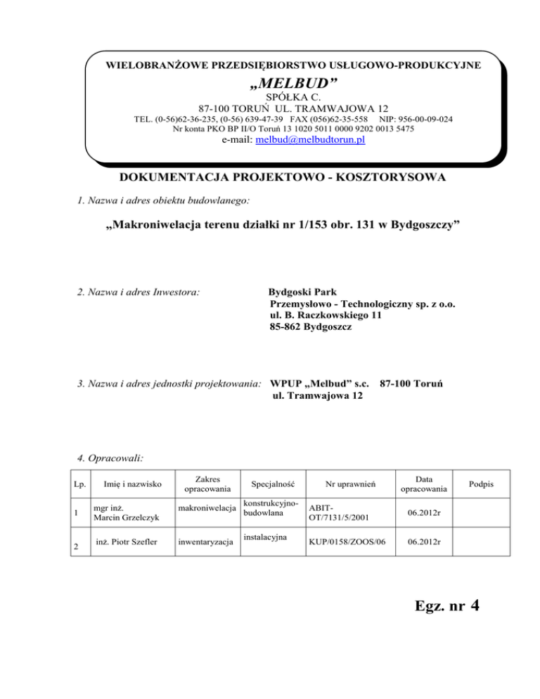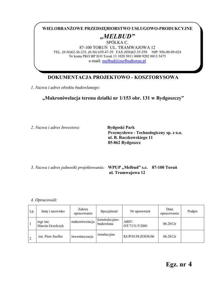 Egz. nr 4 „MELBUD” - BIP - Bydgoski Park Przemysłowo