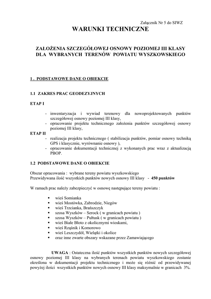 osnowy poziomej III klasy na wybranych terenach powiatu wyszkowskiego zostanie