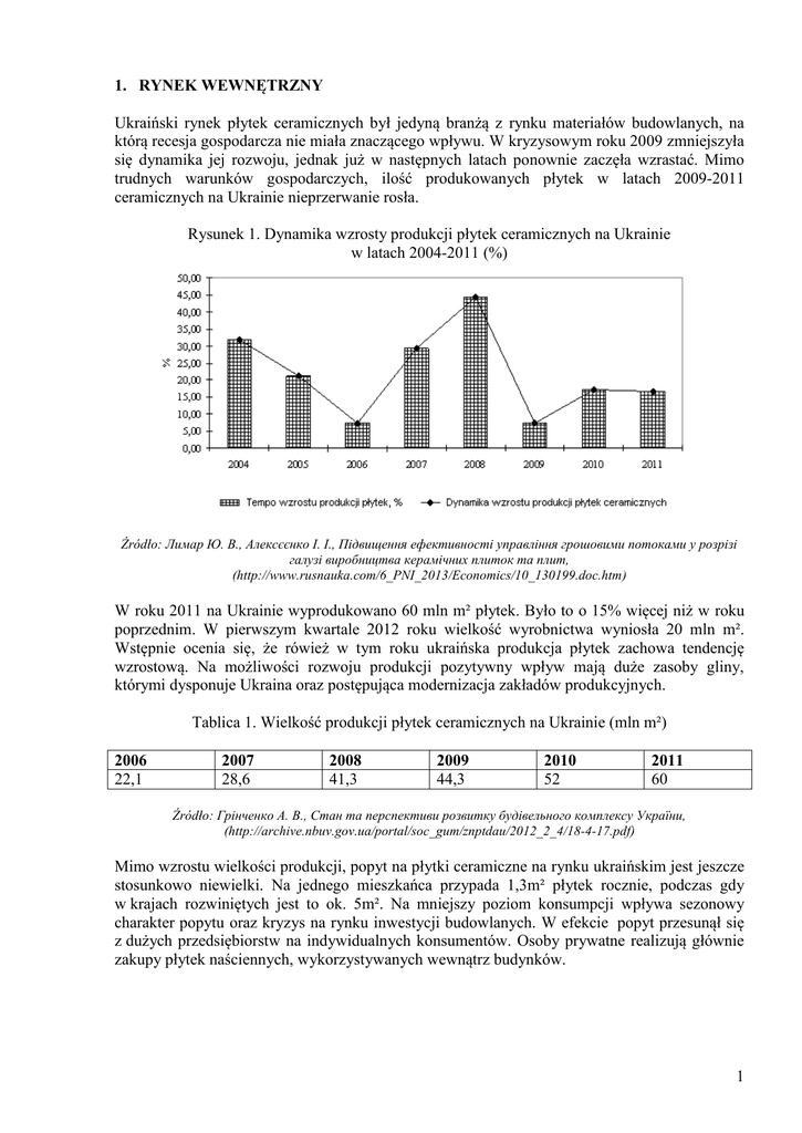1 1. RYNEK WEWNĘTRZNY Ukraiński rynek płytek ceramicznych