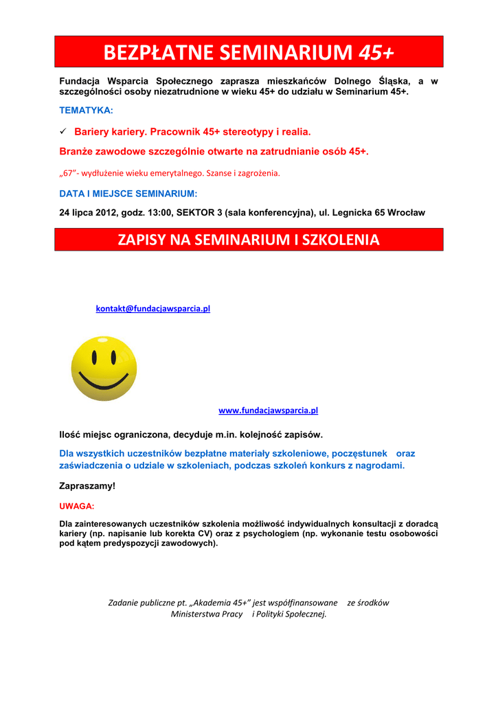 BEZPŁATNE SEMINARIUM 45+