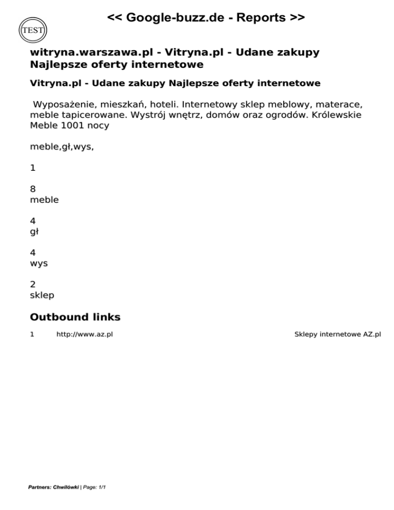 << Google-buzz.de - Reports >> witryna.warszawa.pl - Vitryna.pl - Udane zakupy Najlepsze oferty internetowe Vitryna.pl - Udane zakupy Najlepsze oferty internetowe Wyposażenie, mieszkań, hoteli. Internetowy sklep meblowy, materace, meble tapicerowane. Wystrój wnętrz, domów oraz ogrodów. Królewskie Meble 1001 nocy meble,gł,wys, 1 8 meble 4 gł 4 wys 2 sklep Outbound links 1 http://www.az.pl Partners: Chwilówki | Page: 1/1 Powered by TCPDF (www.tcpdf.org) Powered by TCPDF (www.tcpdf.org) Sklepy internetowe AZ.pl
