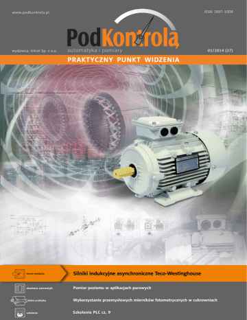 ISSN 1897-1008 www.podkontrola.pl 01/2014 (27) wydawca: Introl Sp. z o.o. PRAKTYCZNY PUNKT WIDZENIA Silniki indukcyjne asynchroniczne Teco-Westinghouse Pomiar poziomu w aplikacjach parowych Wykorzystanie przemysłowych mierników fotometrycznych w cukrowniach Szkolenie PLC cz. 9 wydawca aktualności str. 3 nowości str. 4 temat wydania INTROL Sp. z o.o. ul. Kościuszki 112 40-519 Katowice tel. 32 789 00 00 fax 32 789 00 10 Silniki indukcyjne asynchroniczne Teco-Westinghouse dodatkowe informacje i subskrypcja www.podkontrola.pl Wykorzystanie przemysłowych mierników fotometrycznych w cukrowniach redakcja Paweł Głuszek Bogusław Trybus Rafał Skrzypiciel Adam Reimann str. 6 dobra praktyka str. 12 akademia automatyki Pomiar poziomu w aplikacjach parowych na przykładzie kotła energetycznego z walczakiem str. 14 szkolenia Szkolenie PLC cz. 9 Programowanie sterownika z wykorzystaniem diagramu bloków funkcyjnych str. 17 od redakcji Drodzy Czytelnicy! Witając wszystkich w nowym roku zapraszam do lektury wyjątkowego wydania „Pod kontrolą” 1/2014. Dlaczego wyjątkowego? Bo każdy artykuł ma w sobie coś czego nie było wcześniej. Coś co można nazwać wyjątkowym. Zapraszam zatem do lektury. Asynchroniczne silniki indukcyjne jako popularnie wykorzystywane urządzenia do zamiany energii elektrycznej w mechaniczną, znajdują zastosowanie w niemal każdym zakładzie, w niemalże wszystkich branżach. Problematyka napędzania pomp, wentylatorów, przenośników, mieszalników, elementów techniki liniowej i większości innych maszyn, przy jednoczesnej minimalizacji zużycia energii, jest więc kwestią istotną z punktu widzenia każdego zakładu. Zapraszamy do lektury „Temat wydania”, bo tym razem w wyjątkowo obszernym artykule prezentujemy podstawowe wymogi dotyczące silników indukcyjnych oraz wiele cennych uwag umożliwiających trafny dobór odpowiedniego rozwiązania. To nie jedyny artykuł mający w sobie pierwiastek wyjątkowości. Pierwsza w tym roku „Dobra praktyka” jest także wyjątkowa, a to z uwagi na bezpośredni udział przy jej tworzeniu przedstawicieli polskiego przemysłu cukrowniczego. Współautorzy artykułu, którzy są jednocześnie użytkownikami opisywanego rozwiązania, przedstawiają w jaki sposób wykorzystują fotometryczne mierniki mętności i barwy w swoim procesie. Artykuł szczególnie polecamy wszystkim osobom związanym z przetwórstwem rolno-spożywcznym. 2 marzec, 1/2014 Niemalże dokładnie rok temu, w „Pod kontrolą” 1/2013 opisywaliśmy nowo-wprowadzoną serię falowodowych sond radarowych poziomu VEGAFLEX 80. Wśród opisywanych wtedy cech serii 80, szczególnie istotne jest rozwiązanie pozwalające na niezawodny pomiar poziomu w aplikacjach w instalacjach parowych (walczaki). Wyjątkowość takich aplikacji wynika z właściwości mikrofal i ich „zachowania” w parze. To właśnie o falowodowych sondach radarowych i wykorzystaniu ich nowych możliwości w pomiarze poziomu w aplikacjach parowych taktuje „Akademia automatyki”. W tym roku rozpoczynamy również nowy cykl krótkich artykułów aplikacyjnych o konkretnych zastosowaniach naszych urządzeń oraz doświadczeniach z tym związanych. Szczególnie ciekawe efekty osiągnęliśmy w zakresie diagnostyki ultradźwiękowej, która często w prosty sposób pozwala na diagnostykę i, co najważniejsze, faktyczne wykrywanie usterek w szerokiej gamie aplikacji. Zapraszamy zatem do „Szkoły Utrzymania Ruchu”. I na koniec ostatni wyjątkowy artykuł – „Szkolenie PLC”. Wyjątkowy, gdyż ostatni prezentujący zasady działania i programowania przekaźników serii SG2. W kolejnych numerach autor szkolenia skupi uwagę już na innym typie sterownika. Zapraszam do lektury Jerzy Janota Dyrektor ds. rozwiązań produktowych aktualności Katalog produktów 2014 furtką do nowoczesnego przemysłu W marcu tego roku zadebiutował nowy Katalog produktów 2014. Prezentujemy w nim pełen asortyment aparatury kontrolno-pomiarowej, komponentów automatyki przemysłowej, armatury przemysłowej i akcesoriów. Katalog liczy niemal 400 stron i zawiera zbiorcze zestawienie jednej z najszerszych ofert na polskim rynku. Katalog produktów 2014 to 17 grup produktów podzielonych według zastosowania i typu: – pomiary temperatury – pomiary ciśnienia – pomiary poziomu – pomiary przepływu – pomiary fizykochemiczne i gęstości – pomiary wilgotności i punktu rosy – analiza i detekcja gazów – masa – wskaźniki – rejestracja i wizualizacja – transmisja bezprzewodowa – kalibratory – armatura przemysłowa – systemy wizyjne – napędy elektryczne – komponenty automatyki – przyrządy przenośne. Obok dobrze znanych wszystkim naszym Klientom rozwiązań w katalogu znajdą Państwo sporo nowinek ze świata pomiarów i automatyki. Szczególnie zachęcamy do zapoznania się z nowymi produktami w zakresie systemów wizyjnych. Bezpłatny Katalog produktów 2014 dostępny jest w wersji drukowanej oraz w formie multimedialnej na płycie CD. Wszystkich zainteresowanych otrzymaniem bezpłatnego Katalogu produktów 2014 prosimy o kontakt z Działem Marketingu ([email protected]), Biurem Wsparcia ([email protected]) lub Przedstawicielem Regionalnym (dane kontaktowe na www.introl.pl). Zapraszamy także do zapoznania się z katalogiem produktów dostępnym na stronie www.introl.pl. LAND z prestiżową nagrodą Nasz wieloletni partner – Land Instruments International został zwycięzcą prestiżowej nagrody BEEA (British Engineering Excellence Awards) w kategorii „Grupa Projektowa Roku” (2013) za opracowanie pirometru nowej generacji LAND SPOT. Nagroda BEEA jest przyznawana za stworzenie unikatowego układu elektrycznego lub mechanicznego jakiegoś produktu. Konstrukcja pirometru LAND SPOT zawiera się w obu tych kategoriach. Zespół projektowy LAND łączył w sobie fachowców z dziedziny elektroniki, budowy maszyn, techniki produkcji, oprogras mowania i fizyki. Efekt