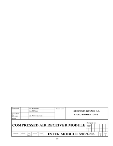 Opracował inż. G.Brejwo Kontr. norm STOCZNIA GDYNIA S.A. inż. M.Necel Sprawdził K-k prac. BIURO PROJEKTOWE inż. R.Nowakowski Wydał COMPRESSED AIR RECEIVER MODULE Masa w kg - Podziałka - Format 6xA4 Pow. w m2 Nr odb. Zastępuje rys. Symbol zmian INTER MODULE S/03/G/03 1/6 Ark Il. ark. 1 6 SPIS TREŚCI 1. Wstęp 3 2. Charakterystyka bloku zbiorników sprężonego powietrza 4 3. Wyposażenie bloku zbiorników sprężonego powietrza 5 4. Podsumowanie 6 2/6 1. WSTĘP. Wymogi rynku stoczniowego zmuszające do skracania cykli produkcyjnych statków zmieniają podejście stoczni produkcyjnych do technologii budowy jednostek pływających. Jedną z poważnych możliwości skrócenia budowy jednostek jest stosowanie w szerokim zakresie wyposażania modułowego. Wykorzystując doświadczenia nabyte w trakcie budowy długich serii jednostek Stocznia zauważa duże możliwości w modularyzacji kolejnych elementów wyposażenia okrętowego. Takim przykładem pozwalającym zredukować koszty montażowoinstalacyjne jest blok zbiorników sprężonego powietrza. Ze względu na wymaganą przepisami towarzystw klasyfikacyjnych konieczność instalowania dwu głównych zbiorników sprężonego powietrza oraz dużą ilością występujących na tych zbiornikach podłączeń rurociągów sprężonego powietrza dla różnych poborów zasadne jest zblokowanie ich w jeden moduł wraz z rurociągami, przynależną armaturą oraz oprzyrządowaniem. Na zdjęciu i rysunku poniżej pokazano instalację wykonaną z osobnych elementów. Fot.1. Zbiornik sprężonego powietrza z armaturą i rurociągami 3/6 8 6 5 4 2 3 5 4 6 1 2 7 3 1 7 legenda: 1. Zbiornik powietrza rozruchowego 2. Zawór poboru do rozruchu silników napędu głównego 3,5 Zawory poborów pomocniczych 4. Zawór bezpieczeństwa 6. Właz inspekcyjny 7. Mocowanie górne 8. Rurociągi rozruchowe silników napędu głównego Rys.1 Zbiorniki sprężonego powietrza zainstalowane w tradycyjny sposób 2. CHARAKTERYSTYKA BLOKU ZBIORNIKÓW SPRĘŻONEGO POWIETRZA. Jak już wspomniano ze względu na przepisy na jednostkach pływających zazwyczaj występują dwa główne zbiorniki powietrza rozruchowego. Zbiorniki te często nazywane są zbiornikami rozruchowymi ze względu na pełnioną przez nich główną funkcję, tj. magazynowanie sprężonego powietrza służącego jako źródło energii rozruchowej dla silników napędu głównego statku. W celu uniknięcia podwyższania kosztów instalacyjnych ww. zbiorniki często pełnią również funkcję zbiorników rozruchowych dla zespołów prądotwórczych, mogą również zasilać tyfon powietrzny, a poprzez zawory redukcyjne i system rurociągów rozprowadzonych po całym statku służyć jako zbiorniki powietrza dla celów gospodarczych i technicznych (np. zasilają różnego rodzaju wyposażenie okrętowe i napędzają narzędzia pneumatyczne). 4/6 3. WYPOSAŻENIE BLOKU ZBIORNIKÓW SPRĘŻONEGO POWIETRZA. W skład bloku włączono następujące elementy: - dwa zbiorniki sprężonego powietrza w wykonaniu lustrzanym (lustrzane odbicie umożliwia zmniejszenie gabarytów bloku oraz skraca długość rurociągów); - armaturę zainstalowaną bezpośrednio na zbiornikach; - odcinki rurociągów zasilających, poborów oraz odlotowych z zaworów bezpieczeństwa; - aparaturę kontrolno pomiarową (presostaty, przetworniki ciśnienia, manometry itp.) zamontowane na wspólnych fundamentach bezpośrednio na zbiornikach; - elementy mocujące blok do konstrukcji kadłubowej statku. Ze względu na gabaryty opisywanego bloku zakłada się, że wszystkie elementy wchodzące w skład bloku będą spasowane ze sobą u producenta, po czym rozmontowane i przetransportowane na statek, gdzie ponownie zostaną złożone w cały blok. Pojemność zbiorników (i tym samym ich gabaryty) oraz wielkość przyłączy i armatury jest określana w każdym przypadku indywidualnie w zależności od zastosowanych silników napędu głównego, wymagań przepisów i armatora oraz dostępnej przestrzeni w siłowni statku. Wybór wyposażenia bloku po uwzględnieniu powyższych warunków wykonywany jest przez dostawcę bloku wg jego standardów. 5/6 Rys.2. Model 3D bloku zbiorników sprężonego powietrza 4. PODSUMOWANIE. Korzyści wynikające ze zintegrowania zbiorników sprężonego powietrza wraz z elementami instalacji sprężonego powietrza można przedstawić w skrócie j.n. - znaczne oszczędności miejsca zajmowanego przez blok w stosunku do tradycyjnego rozwiązania; - krótszy czas montażu instalacji dzięki ujęciu w bloku elementów kłopotliwych do spasowania na statku; - łatwiejsze do wykonania podłączenia statkowej inst. sprężonego powietrza wynikające ze zblokowania króćców podłączeniowych w w dwóch grupach (dla rurociągów prowadzonych przy podłodze i dla prowadzonych pod pokładem powyżej); - poprzez zamontowanie w bloku aparatury kontrolno-pomiarowej brak konieczności wykonywania przez stocznię dodatkowych mocowań; - wspólne mocowanie górne dla obu zbiorników zamiast dwu oddzielnych dla tradycyjnego rozwiązania. 6/6