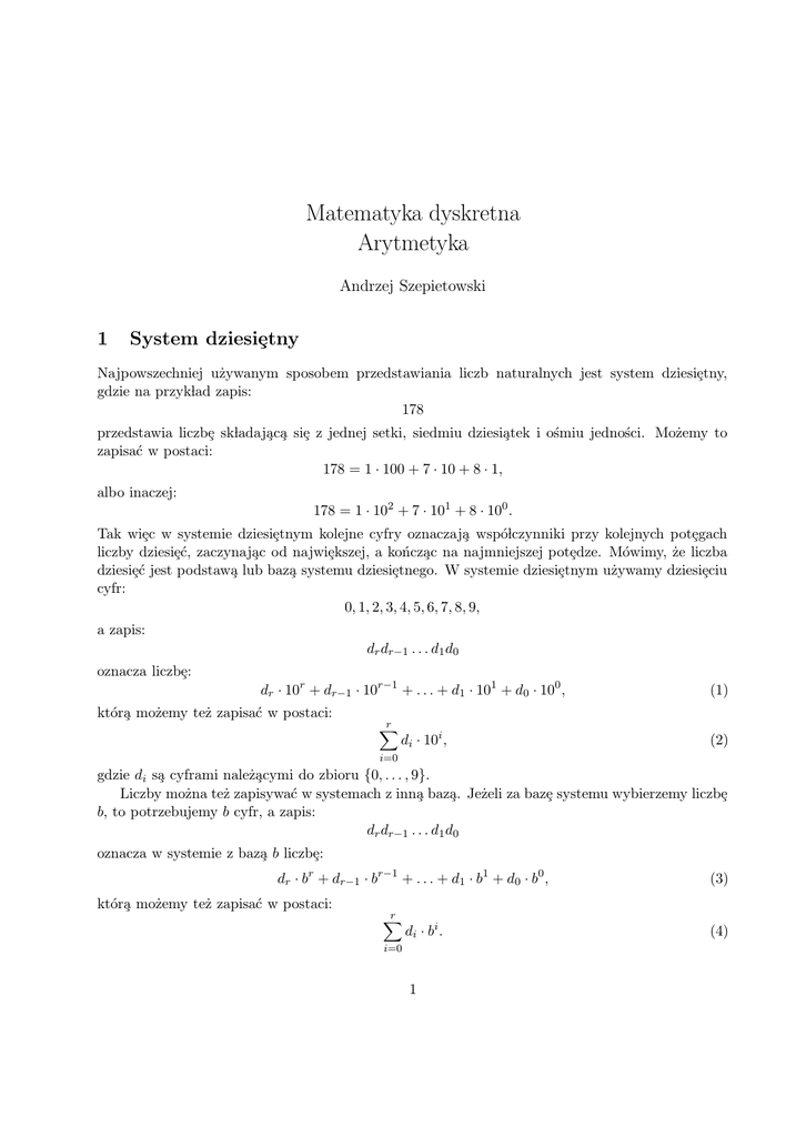 Matematyka dyskretna Arytmetyka