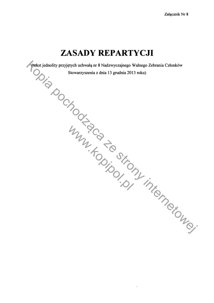 ustala się następujące zasady (zwane dalej Zasadami Repartycji):