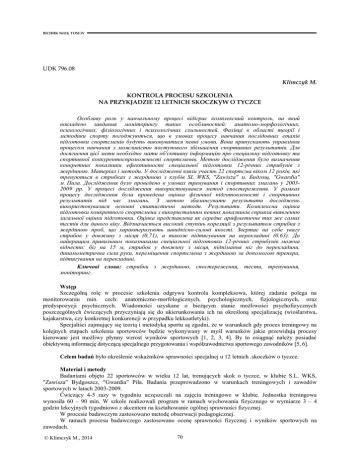 UDK 796.08 Klimczyk M. KONTROLA PROCESU SZKOLENIA NA
