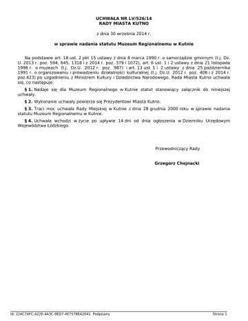 uchwała nr lv/526/14 - Muzeum Regionalne w Kutnie