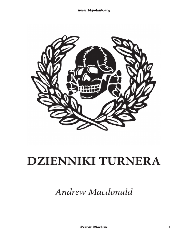 świata za kilkanaście lat. Masz ów utwór przed sobą, drogi Czytelniku. To właśnie Dzienniki Turnera. W przeciwieństwie do setek powieści ginących corocznie wśród tysięcy