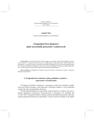 Gospodarstwo domowe jako uczestnik procesów rynkowych