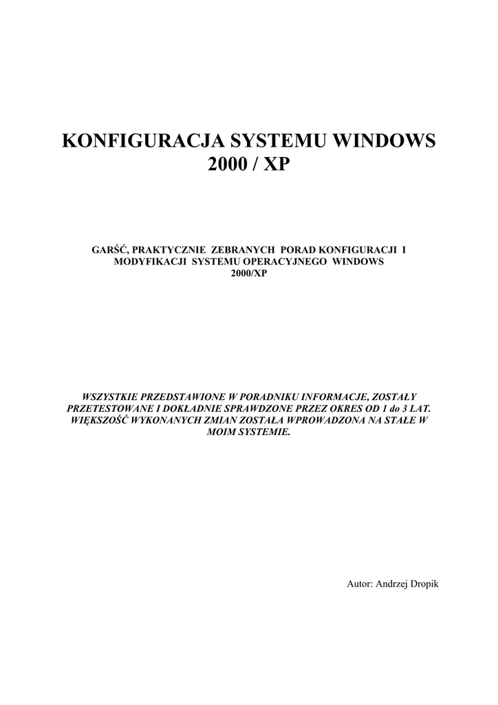 operacyjnych Windows 2000 / XP, ale większość z nich z powodzeniem moŜemy zastosować
