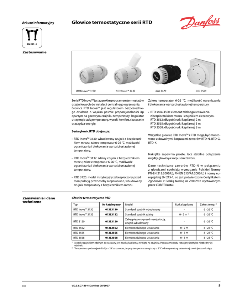 Głowice termostatyczne serii RTD