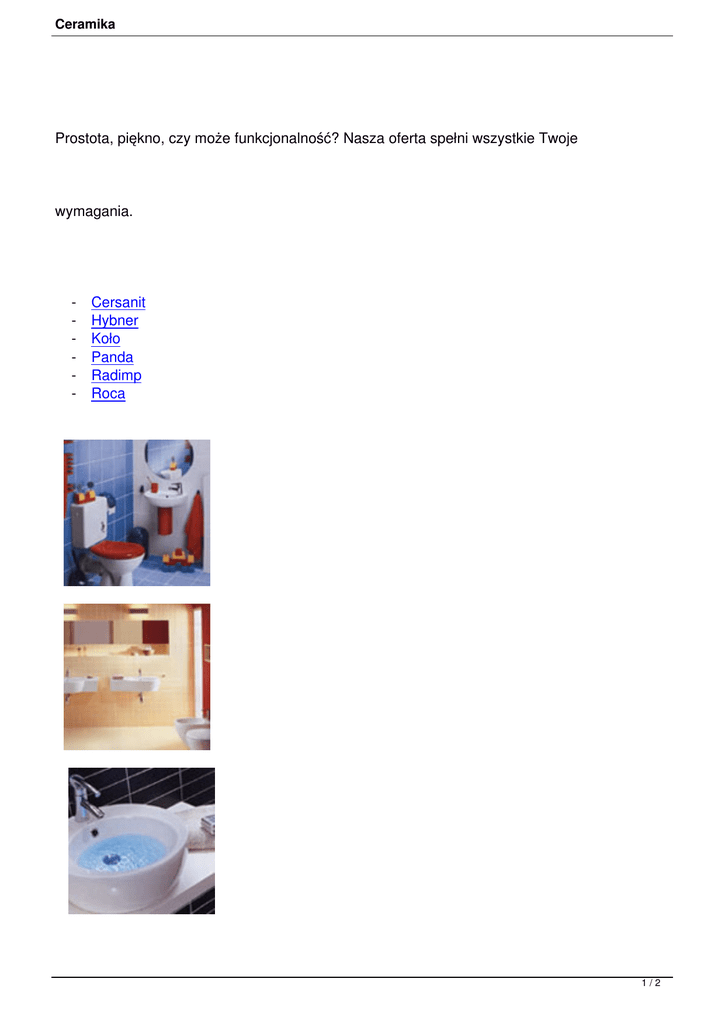Ceramika Prostota, piękno, czy może funkcjonalność? Nasza oferta spełni wszystkie Twoje wymagania. - Cersanit Hybner Koło Panda Radimp Roca 1/2 Ceramika 2/2