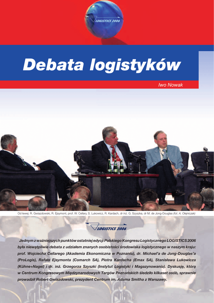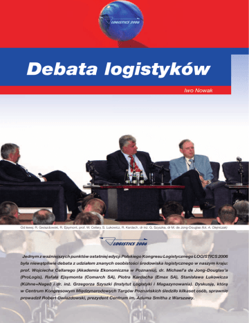 Debata logistyków Iwo Nowak Od lewej: R. Gwiazdowski, R. Ejsymont, prof. W. Cellary, S. Lukowicz, R. Kardach, dr inż. G. Szyszka, dr M. de Jong-Douglas (fot. A. Olejniczak) Jednym z ważniejszych punktów ostatniej edycji Polskiego Kongresu Logistycznego LOGISTICS 2006 była niewątpliwie debata z udziałem znanych osobistości środowiska logistycznego w naszym kraju: prof. Wojciecha Cellarego (Akademia Ekonomiczna w Poznaniu), dr. Michael’a de Jong-Douglas’a (ProLogis), Rafała Ejsymonta (Comarch SA), Piotra Kardacha (Emax SA), Stanisława Lukowicza (Kühne+Nagel) i dr. inż. Grzegorza Szyszki (Instytut Logistyki i Magazynowania). Dyskusję, którą w Centrum Kongresowym Międzynarodowych Targów Poznańskich śledziło kilkaset osób, sprawnie prowadził Robert Gwiazdowski, prezydent Centrum im. Adama Smitha z Warszawy. Rozwój logistyki w Polsce to bieg z przeszkodami Rozpoczynając debatę R. Gwiazdowski zwrócił uwagę, iż Polska była i jest „świetnym poligonem doświadczalnym” dla implementowania i twórczego rozwijania różnych rozwiązań logistycznych m.in. dlatego, że w jeszcze w niedalekiej przeszłości jej mieszkańcy musieli codziennie rozwiązywać szereg problemów zupełnie nieznanych na Zachodzie, wyrabiając sobie zmysł organizacji. „Pamiętamy przecież, że wówczas ‘przedsięwzięciem logistycznym’ było np. zdobycie papieru toaletowego” – dodał. Jednak to zapóźnienie w stosunku do krajów Zachodniej Europy przyniosło w efekcie sytuację, w której Polacy przeskoczyli jeden etap rozwoju społecznego i są już postrzegani jako społeczeństwo postindustrialne, co ma istotne znaczenie np. dla rozwoju logistyki. M. de Jong-Douglas podkreślił konieczność intensyfikacji działalności zachodnich firm logistycznych w Europie Centralnej. „Do Polski powinno wchodzić jesz- cze więcej inwestorów zagranicznych, ale też sami Polacy jeszcze bardziej aktywnie powinni wkraczać na rynki europejskie, zwłaszcza na obszarze Europy Wschodniej, gdyż znacznie lepiej je rozumieją” – zaznaczył. Oceniając jakość pracy naszych rodaków stwierdził: „Polscy pracownicy są bardzo dobrzy. Ich jakość pracy należy ocenić bardzo wysoko. Taką opinię mają o nich nie tylko Anglicy, ale i Holendrzy, czy pracodawcy z innych państw Europy Zachodniej. W samej Polsce też tak wiele się teraz buduje i dzieje w sektorze logistyki, jak nigdy przedtem. Ale trzeba niestety wskazać na panującą w waszym kraju biurokrację, która dotyka także naszej branży i jej rozwoju w Polsce” – powiedział M. de Jong-Douglas. ko firmie w naszym kraju etykiety logistycznej, którą wdrażamy w całej Europie” – powiedział. Natomiast niektórzy dyskutanci jako jedną z głównych przyczyn przesuwania się „logistycznego centrum Europy” na południe od Polski wskazywali brak odpowiedniej sieci autostrad w naszym kraju, w przeciwieństwie do innych państw w tej części kontynentu. R. Ejsymont wskazał na bardzo wysoki poziom wykształcenia polskiej kadry w segmencie IT. „Niektóre projekty, realizowane obecnie np. dla odlewnictwa w Europie i USA są właśnie dziełem Polaków. Dlatego tak ważne jest, by kultura informatyczna i świadomość były pod tym względem jak najwyższe u potencjalnych odbiorców tego typu usług, w tym szczególnie wśród sektora małych i średnich przedsiębiorstw, o których nie wolno zapominać. Wskazana jest przy tym pomoc całego środowiska ekonomicznego m.in. przy pozyskiwaniu środków na realizację zamierzeń z zakresu IT” – dodał. S. Lukowicz: „Z naszej strony widzimy dwie bariery rozwoju logistyki w Polsce. Pierwsza to łączność, która jeszcze w wielu rejonach kraju nie jest dostatecznie szybka. Ponadto sześcio, czy ośmiomiesięczny okres realizacji projektów logistycznych to zdecydowanie za długo. Drugą sprawą jest prawo. Jest ustawa o podpisie elektronicznym, ale brak do niej przepisów wykonawczych. Podobnie brak regulacji prawnych dla automatycznego fakturowania. A to właśnie może pomóc wielu przedsiębiorstwom. Osobnym zagadnieniem jest kształcenie i kwalifikacje polskiej kadry logistycznej. Muszę powiedzieć, że zatrudniamy osoby, które potem doskonale dają sobie radę w Niemczech, Francji, Wielkiej Brytanii. Tymczasem są tu też ludzie z kwalifikacjami, którzy po opuszczeniu uczelni muszą pracować na podrzędnych stanowiskach w marketach. Musimy wiedzieć, że jak młodzi wyjdą z uczelni i przez 2 – 3 lata nie będą pracować w swoim fachu, to ich wiedza nie rozwinie się, a oni sami będą dla nas straceni”. G. Szyszka zaznaczył, iż powinniśmy sobie zdawać sprawę, że pod względem lokalizacji inwestycji logistycznych nie jesteśmy już w centrum Europy, które zaczęło przesuwać się w kierunku południowym. „Tego typu inwestycje są obecnie lokalizowane np. w rejonie Lipska lub na południe od nas” – stwierdził, wskazując przy tym na zagadnienie tempa wdrażania standardów krajowych i międzynarodowych w Polsce, co ma wpływ na postrzeganie naszego kraju jako miejsca lokalizacji inwestycji logistycznych. „W Polsce jest wręcz tytaniczną pracą wdrożyć takie standardy. Dwa lata ciężkiej pracy kosztowało wdrożenie w jednej tyl- Nawiązując do wypowiedzi poprzednika W. Cellary podkreślił, że „W dzisiejszym świecie nie da się już wykazać przewagi dokumentu papierowego nad elektronicznym, ale – jak uczy praktyka – w Polsce takie coś jest nadal możliwe, a dobra wola ustawodawcy jakoś nie przekłada się na dobrą wolę ekip rządzących”. Zdaniem profesora, „Trzeba zdawać sobie sprawę, że sposób prowadzenia biznesu zależy od stosowanego medium komunikacyjnego. Mając elektronikę zamiast papieru jesteśmy w stanie niemal natychmiast dotrzeć prawie w każdy zakątek świata. Małe i średnie przedsiębiorstwa zaczynają opierać swoją działalność na uczestnictwie w organizacjach sieciowych, a logistyka znaj