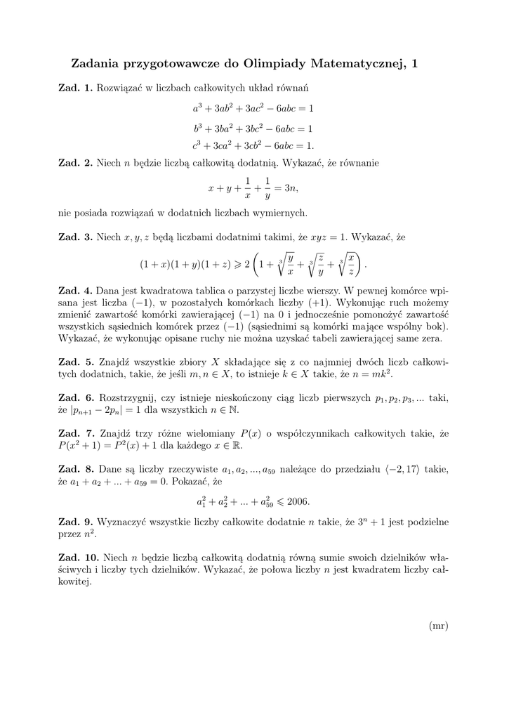 Zadania przygotowawcze do Olimpiady Matematycznej, 1