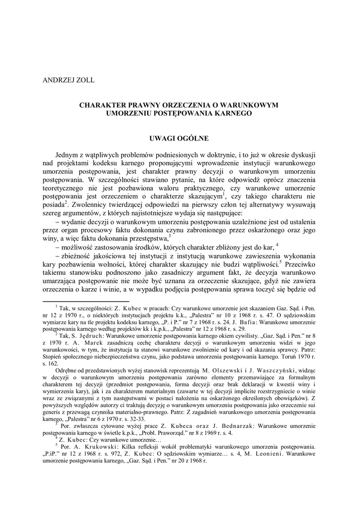 A. Zoll - CHARAKTER PRAWNY ORZECZENIA O WARUNKOWYM