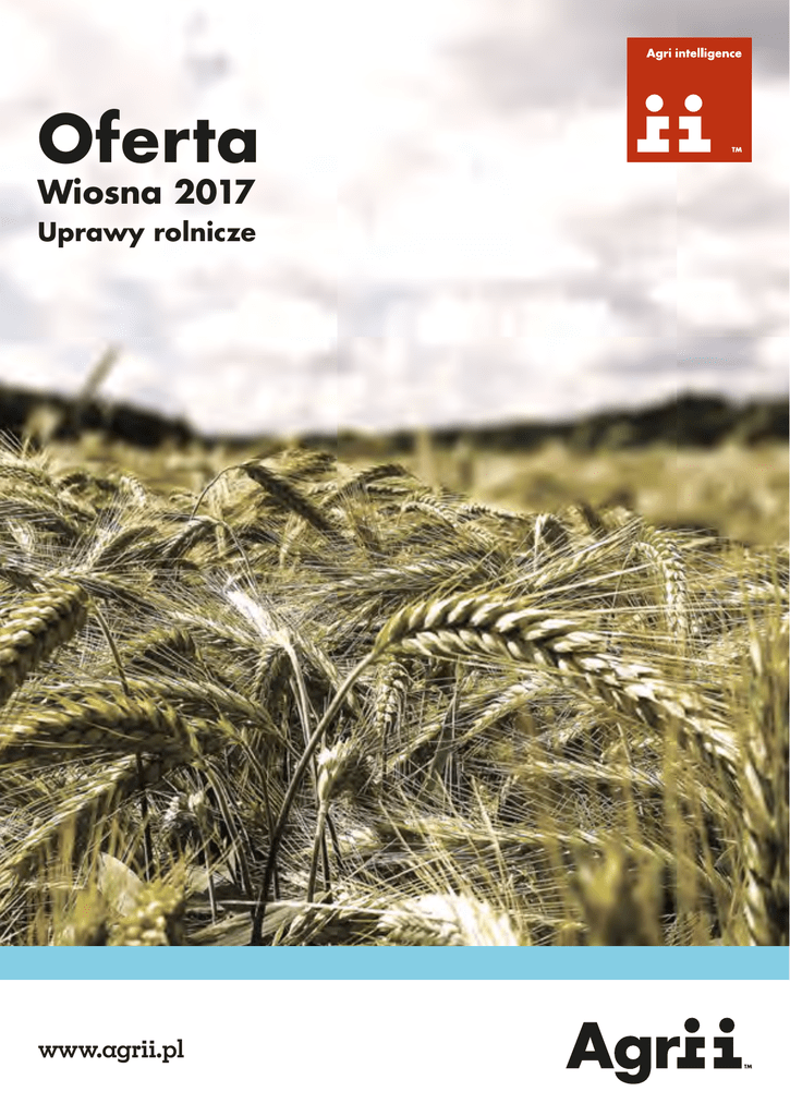 Oferta Wiosna 2017 Uprawy rolnicze www.agrii.pl Spis treści ŚRODKI OCHRONY ROŚLIN Herbicydy do ochrony zbóż Herbicydy do ochrony kukurydzy Fungicydy do ochrony zbóż i rzepaku Fungicydy do ochrony ziemniaka, warzyw i sadów 02 03 04 05 NASZE REKOMENDACJE Pszenica ozima (premium) Pszenica ozima (standard) Pszenica ozima (niskonakładowa) Jęczmień ozimy Pszenżyto/żyto Pszenica jara/jęczmień jary Kukurydza Rzepak ozimy Ziemniak 07 08 09 10 11 12 13 14 15 ZBOŻA JARE Dobierz pszenicę do swoich potrzeb 16 Dobierz owies do swoich potrzeb 16 Dobierz jęczmień do swoich potrzeb 17 Piktogramy - cechy gatunków zbóż 18 KWS Fabienne NOWOŚĆ20 Puzon NOWOŚĆ22 Spartan NOWOŚĆ24 Flavour 26 Struna 27 Scirocco 28 Nagus 29 SŁONECZNIK Zestawienie odmian Regata NOWOŚĆ Bella 30 32 33 RZEPAK JARY Delight F1 34 BOBOWATE Zestawienie odmian Aligator Graf 36 38 39 ZIELONE Tabela zbiorcza - użytki zielone Piktogramy - cechy użytków zielonych Alpha Intensive Lemmon Belleek BG-1500 Uszata BG-700 Bycza BG-800 Rogata BG-600 Łaciata BG-1100 Mleczna 1 40 40 42 43 44 45 46 47 48 49 50 2,4-D 600 g/l karfentrazon etylowy 40% MCPA 750 g/l florasulam 150 g/kg fenoksaprop-P-etylowy 69 g/l pinoxaden 50 g/l fluroksypyr 250 g/l tribenuron metylu 750 g/kg jodosulfuron 8,3 g/kg propoksykarbazon sodowy 140 g/kg amidosulfuron 60 g/kg Aurora 40 WG Chwastox 750 SL Dragon 450 WG Fantom 069 EW Fraxial 50 EC Starane 250 EC Tribex 75 WG Zeus 208 WG Substancja aktywna Aminopielik Standard 600 SL Nazwa produktu ZIELONE 0,3 0,015 - 0,02 0,3 - 0,8 0,6 - 1,2 0,8 - 1,2 0,033 0,75 - 1 1 - 1,25 Dawka BOBOWATE SŁONECZNIK ZBOŻA JARE Pszenica ozima Pszenica jara Jęczmień ozimy Jęczmień jary Pszenżyto ozime Pszenżyto jare Żyto Herbicydy do ochrony zbóż RZEPAK JARY Owies użytki zielone Inne do 29 13 - 29/29 - 30 13 - 37 21 - 31 13 - 37 11 - 37 20 - 30 od ruszenia wegetacji do 29 11 - 37 13 - 31 21 - 29 13 - 29 14 - 29 Termin stosowania zboża jare (BBCH) ŚRODKI OCHRONY ROŚLIN 21 - 31 21 - 29 13 - 29 21 - 29 Termin stosowania zboża ozime (BBCH) NASZE REKOMENDACJE dikamba 700 g/l petoksamid 300 g/l terbutylazyna 187,5 g/l sulkotrion 300 g/l Oceal 700 SG Successor TX 487,5 SE Sulcogan 300 SC BOBOWATE nikosulfuron 40 g/l Narval 040 OD ZIELONE dikamba 500 g/kg prosulfuron 50 g/kg Substancje aktywne Casper 55 WG Nazwa produktu RZEPAK JARY 1,5 4 0,4 - 0,5 1 0,3 Dawka SŁONECZNIK ZBOŻA JARE po wschodach do fazy 6 liści po siewie do fazy 4 liści po wschodach do fazy 6 liści po wschodach do fazy 9 liści po wschodach do fazy 8 liści Faza stosowania Herbicydy do ochrony kukurydzy NASZE REKOMENDACJE ŚRODKI OCHRONY ROŚLIN komosa, gwiazdnica, psianka, chwastnica komosa, przytulia, szarłat, rumian rdestówka powojowata, komosa biała chwastnica, gwiazdnica, przytulia, szarłat, żółtlica bylica, rdesty, szczaw, maruna, mak Wybrane zwalczane chwasty 1 0,8 0,75 - 1 0,75 - 1 0,75 - 1 1,4 - 1,5 1,2 - 1,5 0,9 - 1,2 iprodion 500 g/l tebukonazol 250 g/l flutriafol 125 g/l fluksapyroksad 62,5 g/l metkonazol 45 g/l fenpropidyna 750 difenokonazol 100 g/l tebukonazol 250 g/l folpet 500 g/l protiokonazol 160 g/l spiroksamina 300 g/l protiokonazol 125 g/l tebukonazol 125 g/l epoksykonazol 125 g/l tiofanat metylowy 500 g/l boskalid 233 g/l epoksykonazol 67 g/l tebukonazol 166 g/l biksafen 50 g/l Grisu 500 SC Helicur 250 EW Impact 125 SC Librax Limero Magnello 350 EC Pheonix 500 SC Proline Max 460 EC Prosaro 250 EC Raster 125 SC Toben 500 SC Track 300 SC Zantara 216 EC 1,5 1,33 - 2 1 0,5 - 1,25 1 - 1,5 0,8 - 1 pikoksystrobina 250 g/l Galileo 250 SC 0,2 - 0,3 Dawka chnoksyfen 500 g/l Substancja aktywna RZEPAK JARY SŁONECZNIK ZBOŻA JARE Pszenica ozima Jęczmień ozimy Pszenżyto ozime Żyto Pszenica jara Pszenżyto jare Jęczmień jary Rzepak ozimy czerń krzyżowych, szara pleśń, zgnilizna twardzikowa, alternarioza rdza żółta, rdza brunatna, fuzarioza, rdza karłowa, rynchosporioza, chwościk buraka warzywa, owoce miękkie burak cukrowy i sady jabłoń burak cukrowy septorioza paskowana liści, septorioza plew, brunatna plamistość, fuzarioza, rdza brunatna, rynchosporioza spetorioza paskowana liści i plew, brunatna plamistość, rdza brunatna łamliwość źdźbła, septorioza paskowana liści, mączniak prawdziwy, czerń krzyżowych, szara pleśń, zgnilizna twardzikowa, gorzka zgnilizna septoria paskowana liści, septoria plew, czerń zbóż, brunatna plamistość liści, plamistość siatkowa, septoria paskowana liści, septoria plew, rdza brunatna, fuzarioza, rynchosporioza łamliwość podstawy źdźbła, fuzaryjna zgorzel podstawy źdźbła, septoria paskowana liści, plamistość siatkowa, rdza karłowa septoria paskowana liści, rynchosporioza zbóż rzepak jary, sucha zgnilizna kapustnych gorczyca mączniak, rynchosporioza, rdza brunatna mączniak prawdziwy zbóż i traw, septoria paskowana liści, rdza jęczmienia, rynchosporioza, plamistość siatkowa jęczmienia, rdza brunatna septoria paskowana liści, rdza brunatna, plamistość siatkowa, czerń krzyżowych, zgnilizna twardzikowa septorioza paskowana liści i plew, brunatna plamistość, rdza brunatna, plamistość siatkowa, czerń krzyżowych, zgnilizna twardzikowa, chwościk buraka mączniak ŚRODKI OCHRONY ROŚLIN Rejestracja - wybrane choroby NASZE REKOMENDACJE burak cukrowy Inne Fungicydy do ochrony zbóż i rzepaku BOBOWATE Atlas 500 SC Nazwa produktu ZIELONE kaptan 80% difenokonazol 250 g/l fluazynam 37,5% cymoksanil 25% cyjazofamid 400 g/l Kapelan 80 WG Kicker 250 EC Kunshi 625 WG Ranman 400 SC Twin Pack ZIELONE 2 - 2,5 mankozeb 60% walifealat 6% Emendo M WG 0,2 0,4 - 0,5 0,2 1,9 2 - 2,5 metalaksyl 8% mankozeb 64% Ekonom MM 72 WP 0,2 - 0,5 Dawka cymoksanil 45% Substancja aktywna Drum 45 WG Nazwa produktu BOBOWATE kontaktowe wgłębne RZEPAK JARY układowe Działanie w roślinie alternarioza SŁONECZNIK zaraza parch jabłoni Zwalczane patogeny ZBOŻA JARE brunatna zgnilizna zapobiegawcze Zarejestrowane uprawy ŚRODKI OCHRONY ROŚLIN pomidor, ogórek 