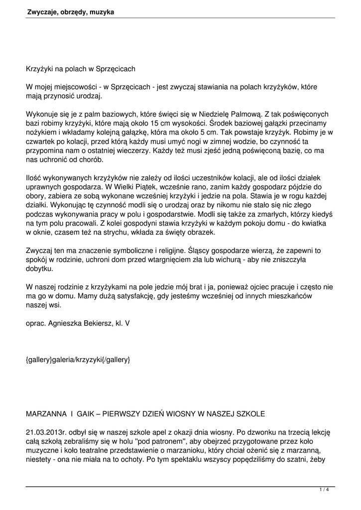 W mojej miejscowości - w Sprzęcicach - jest zwyczaj stawiania na polach krzyżyków, które