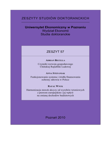 ZESZYTY STUDIÓW DOKTORANCKICH Uniwersytet Ekonomiczny