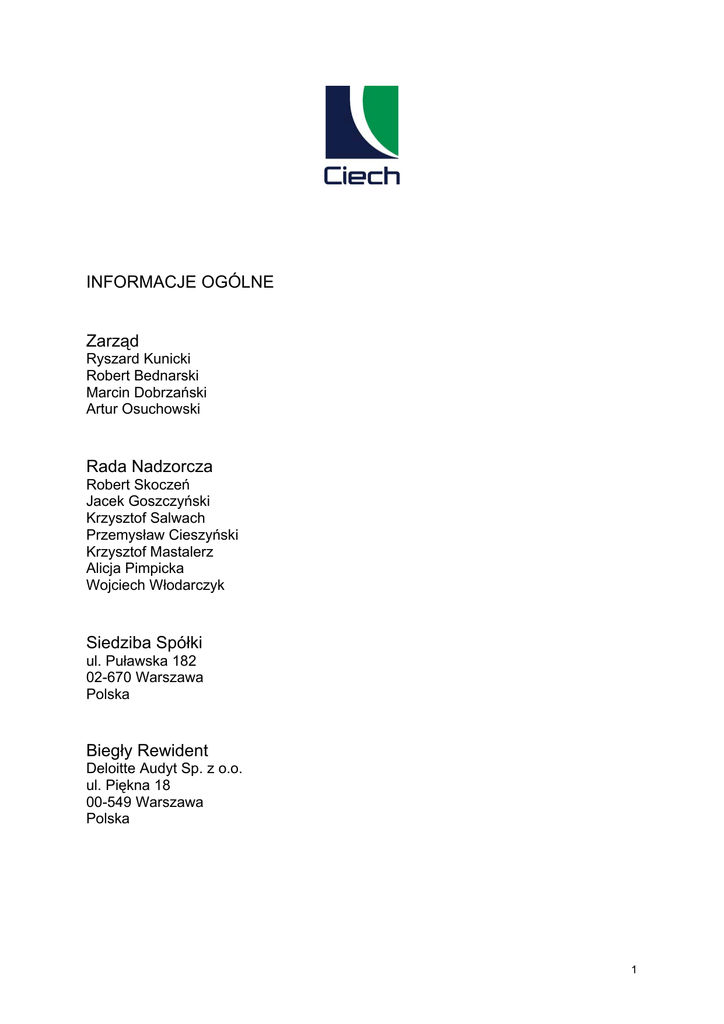 ZMIANY W POWIĄZANIACH ORGANIZACYJNYCH W GRUPIE CIECH........................................................................ 32