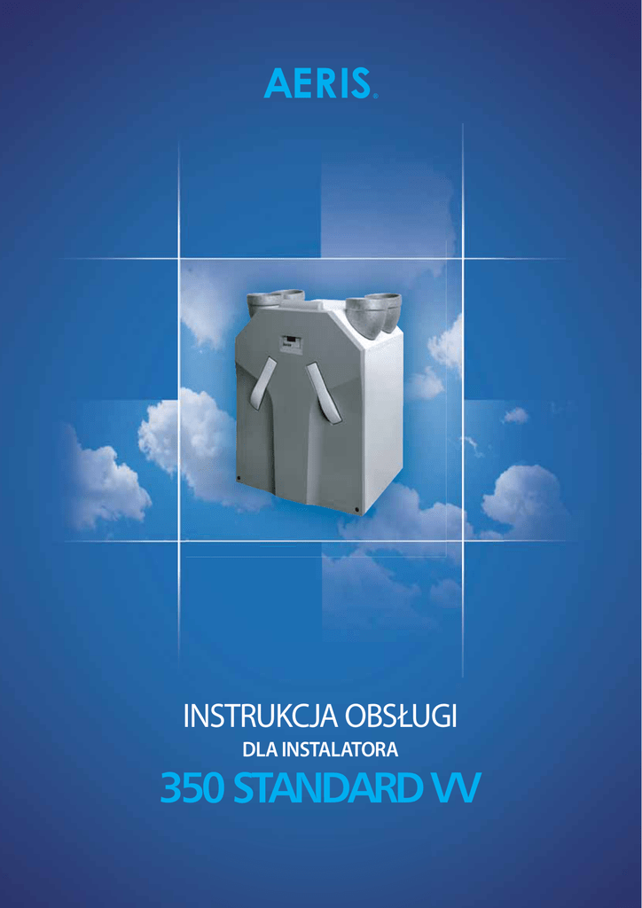 INSTRUKCJA OBSŁUGI DLA INSTALATORA 350 STANDARD VV Wszelkie prawa zastrzeżone. Niniejsza instrukcja obsługi została sporządzona z najwyższą starannością. Wydawca nie ponosi odpowiedzialności za jakiekolwiek szkody powstałe na skutek nieumieszczenia w niej informacji lub umieszczenia w niej nieprawidłowych informacji. PL - II Spis treści Wstęp............................................................................................................................................................... 1 1 2. 3. WPROWADZENIE ........................................................................................................................................... 1 1.1 Oznaczenie CE .................................................................................................................................... 1 1.2 Gwarancja i zakres odpowiedzialności ............................................................................................. 1 1.2.1 Informacje ogólne ...................................................................................................................... 1 1.2.2 Warunki gwarancji ..................................................................................................................... 1 1.2.3 Zakres odpowiedzialności ......................................................................................................... 1 1.3 Bezpieczeństwo ................................................................................................................................. 2 1.3.1 Przepisy dotyczące bezpieczeństwa......................................................................................... 2 1.3.2 Środki bezpieczeństwa.............................................................................................................. 2 1.3.3 Piktogramy użyte w instrukcji .................................................................................................... 2 INFORMACJE DLA INSTALATORA ............................................................................................................... 3 2.1 Budowa centrali wentylacyjnej Aeris ................................................................................................ 3 2.2 Specyfikacje techniczne ..................................................................................................................... 4 2.3 Wymiary centrali wentylacyjnej ......................................................................................................... 6 2.4 Warunki montażu ................................................................................................................................ 7 2.5 Instalacja urządzenia Aeris ................................................................................................................ 7 2.5.1 Transport i rozpakowanie .......................................................................................................... 7 2.5.2 Kontrola dostawy....................................................................................................................... 7 2.6 Montaż urządzenia Aeris .................................................................................................................... 7 2.6.1 Montaż na ścianie...................................................................................................................... 7 2.6.2 Podłączanie kanałów wentylacyjnych ....................................................................................... 7 2.6.3 Podłączenie odpływu kondensatu............................................................................................. 8 2.7 Uruchomienie urządzenia Aeris ......................................................................................................... 9 2.7.1 Wyświetlacz na urządzeniu ....................................................................................................... 9 2.7.2 Menu P dla instalatora ............................................................................................................. 10 2.8 Ustawienia ilości powietrza.............................................................................................................. 13 2.9 Czynności serwisowe wykonywane przez instalatora .................................................................. 14 2.9.1 Przegląd wymiennika ciepła i wentylatorów ............................................................................ 14 2.9.2 Czyszczenie filtra nagrzewnicy wstępnej ................................................................................ 15 2.10 Awarie ................................................................................................................................................ 15 2.10.1 Alarmy sygnalizujące awarię na cyfrowym wyświetlaczu obsługowym .................................. 15 2.10.2 Usuwanie usterek .................................................................................................................... 16 2.10.3 Awarie (lub problemy) bez komunikatów................................................................................. 19 2.11 Części zamienne ............................................................................................................................... 20 2.12 Schemat połączeń: Aeris 350 Standard VV – wersja lewa ........................................................... 21 2.13 Schemat połączeń: Aeris 350 Standard VV – wersja prawa ......................................................... 22 DEKLARACJA ZGODNOŚĆI WE ................................................................................................................. 23 III - PL Wstęp 1.2 Niniejsza instrukcja obsługi oprócz rozdziału dotyczącego informacji ogólnych zawiera również część przeznaczoną dla instalatora. Przed rozpoczęciem eksploatacji urządzenia należy dokładnie zapoznać się z treścią nin