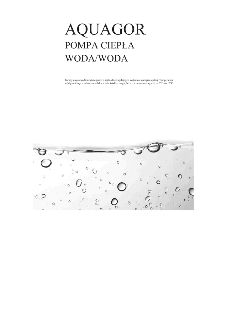 AQUAGOR POMPA CIEPŁA WODA/WODA Pompy ciepła woda/woda to jeden z najbardziej wydajnych systemów energii cieplnej. Temperatura wód gruntowych to bardzo solidne i stałe ródło energii, bo ich temperatura wynosi od 7°C do 13°C. 7 JAK DZIAŁA POMPA CIEPŁA? PAROWNIK SKRAPLACZ SPR ARKA ZASILANIE ELEKTRYCZ NE ZAWÓR ROZPR Pompa ciepła to technologicznie zaawansowany system dostosowany do korzystania z odnawialnych ródeł energii. Jej zalet jest zdolno do odzyskiwania ciepła z powietrza, wód lub gleby w Twoim najbli szym otoczeniu. Istniej trzy typy pomp ciepła, wykorzystuj ce ró ne ródła energii: pompy ciepła wykorzystuj ce powietrze/wod , wod /wod oraz solank /wod Pompa ciepła składa si z parownika, który odzyskuje ciepło z otoczenia (woda, powietrze, gleba). W parowniku czynnik chłodniczy przechodzi ze stanu ciekłego w stan gazowy, a nast pnie jest przenoszony do spr arki. Tam opary s kompresowane w celu zwi kszenia ci nienia i temperatury. Gor ce opary s skraplane w skraplaczu, emituj c NY ciepło kondensacji do no nika grzewczego. Nast pnie czynnik chłodniczy przechodzi przez zawór rozpr ny, gdzie jego ci nienie jest ponownie obni one, i przechodzi z powrotem do parownika, gdzie proces si powtarza. Całe ciepło uzyskane z otoczenia jest darmowe. Do podniesienia jego temperatury potrzeba troch energii. Dlatego do pracy pompy konieczna jest energia elektryczna, która zasila agregat/silnik. Współczynnik wydajno ci – COP Stosunek mocy wej ciowej (energia elektryczna) i ciepła wyj ciowego (energii cieplnej) mie ci si zwykle mi dzy 1/3 i 1/5. Stosunek energii wej ciowej do ciepła wyj ciowego nazywa si współczynnikiem wydajno ci (COP). Warto COP zale y od rodzaju pompy ciepła i ródła energii Istniej trzy podstawowe wersje pomp ciepła w zale no ci od no nika (otoczenie) chłodzonego i no nika ogrzewanego: woda/woda, solanka/woda i powietrze/woda. Podczas okre lania typu pompy ciepła, najpierw wskazuje si ródła, z których pobierane jest ciepło, a nast pnie ogrzewany no nik. cieplnej w otoczeniu rednio roczny COP dla pomp ciepła wynosi od 3 do 5 lub wi cej. 6 MINIMALNE KOSZTY OGRZEWANIA Podstawowe ródło energii Porównanie pierwotnej energii wej ciowej dla 9 kW mocy cieplnej w ró nych systemach grzewczych W porównaniu do innych systemów grzewczych pompy ciepła s bardzo ekonomiczne, do zu ywaj do trzech razy mniej energii pierwotnej ni , na przykład, piece gazowe lub olejowe. Około 75 procent ich energii jest odzyskiwane z otoczenia za darmo, a tym samym wymagaj one tylko o 25 procent w postaci energii elektrycznej do wygenerowania 100 procent mocy grzewczej. Koszty inwestycyjne w przypadku pomp ciepła równie s porównywalne do kosztów innych systemów, poniewa nie wymagaj zbiornika na olej opałowy lub gaz, czy komina, a koszty utrzymania s znacznie ni sze. Moc cieplna Pompa ciepła AQUAGOR Pompa ciepła TERRAGOR Pompa ciepła AEROGOR Kocioł na drewno opałowe Pelety z masy drewnianej Gaz ziemny Zakup pompy ciepła ma sens, bo: • • • • • • • zmniejsza koszty ogrzewania nawet o 75%; nie powoduje zanieczyszcze w miejscu instalacji; jest niezwykle cicha; jest jednocze nie urz dzeniem grzewczym i ekonomicznym urz dzeniem do klimatyzacji/chłodzenia; nie wymaga zbiornika na olej opałowy, przechowywania paliw stałych, przył cza gazu ziemnego ani komina; jest prosta w utrzymaniu; 5 Koszty ogrzewania ni sze o 60 do 70% Pompy ciepła pozyskuj 3/4 wymaganej energii bezkosztowo, ze rodowiska, w którym yjesz. Gleby, wody gruntowe i powietrze na zewn trz przechowuj ogromne ilo ci energii cieplnej, które mog by przekształcone na energi grzewcz za pomoc pomp ciepła. Oszcz dno ci s znaczne w porównaniu do innych konwencjonalnych systemów grzewczych. Ilo energii zu ywanej przez pompy ciepła jest wyra nie ni sza ni ilo ciepła, któr generuj Sprawdzony i niezawodny system grzewczy z pomp ciepła Nowa budowa, remont lub wymiana instalacji grzewczej Zasada działania pompy ciepła znana jest od dawna. Na przykład w domu ciepło z wn trza lodówki jest przenoszone do otoczenia, przez co ogrzewa pomieszczenie. W przypadku pomp ciepła ten proces jest po prostu odwrócony. Pompa wykorzystuje energi elektryczn , by usun ciepło ze rodowiska i przekształci je w cenn energi ciepln , któr mo na wykorzysta do ogrzewania lub chłodzenia pomieszcze . Proste i skuteczne, prawda? Pompa ciepła jest idealnym rozwi zaniem do ogrzewania i chłodzenia nowych i odnowionych budynków lub przy wymianie systemu grzewczego. Działa na zasadach ogrzewania niskotemperaturowego, wi c nadaje si zarówno do ogrzewania podłogowego i ogrzewania z grzejników ciennych, jak równie poł czenia tych metod. Pompy ciepła s równie odpowiednie w odbudowanych lub remontowanych budynkach z ogrzewaniem grzejnikowym. Je li temperatura wody grzewczej 55°C wystarcza nawet w najzimniejsze dni, pompy ciepła s najbardziej ekonomicznym ródłem ogrzewania. Inwestycja w przyszło Proste sterowanie Je li zdecydujesz si na instalacj pompy ciepła dzisiaj, musisz wiedzie , e robisz inwestycj w nast pnym okresie rednioterminowym. Jego prawdziwa warto tkwi w wielu mierzalnych i niemierzalnych aspektach. Poza bezpiecze stwem inwestycji, elastyczno ci , niskimi kosztami ogrzewania, komfortem i wieloma korzy ciami ekonomicznymi i ekologicznymi, pompa ciepła jest w rzeczywisto ci inwestycj w przyszło Twoj i Twoich dzieci. Ogrzewanie z pompami ciepła pozwala oszcz dzi czas, dodatkow prac i pieni dze za dostaw innych paliw oraz odejmuje zmartwie . Wszystkie systemy umo liwiaj bardzo wygodn i prost obsług . Pełny system umo liwia te zdalne sterowanie. Ciepło zim , chłód latem Dzi ki wyj tkowej technologii pompy ciepła system grzewczy ogrzewa dom zim i chłodzi go w lecie. Niezwykłe wła ciwo ci termodynamiczne i zdolno przenoszenia maksymalnej ilo ci energii cieplnej z otoczenia umo liwiaj nie tylko oszcz dne ogrzewanie pomieszcze , ale te podgrzewanie wody przez cały rok. Pona