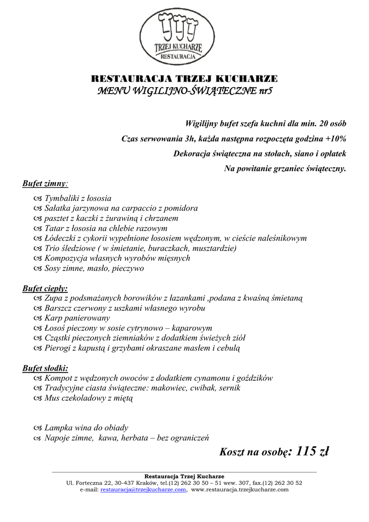 MENU WIGILIJNO-ŚWIĄTECZNE - Restauracja Trzej Kucharze