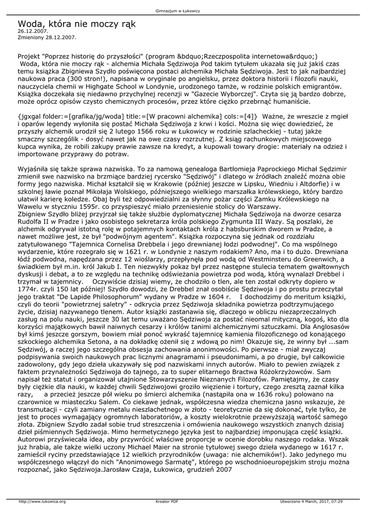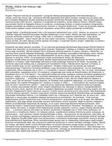 Woda, która nie moczy rąk - alchemia Michała Sędziwoja Pod takim tytułem ukazała się już jakiś czas