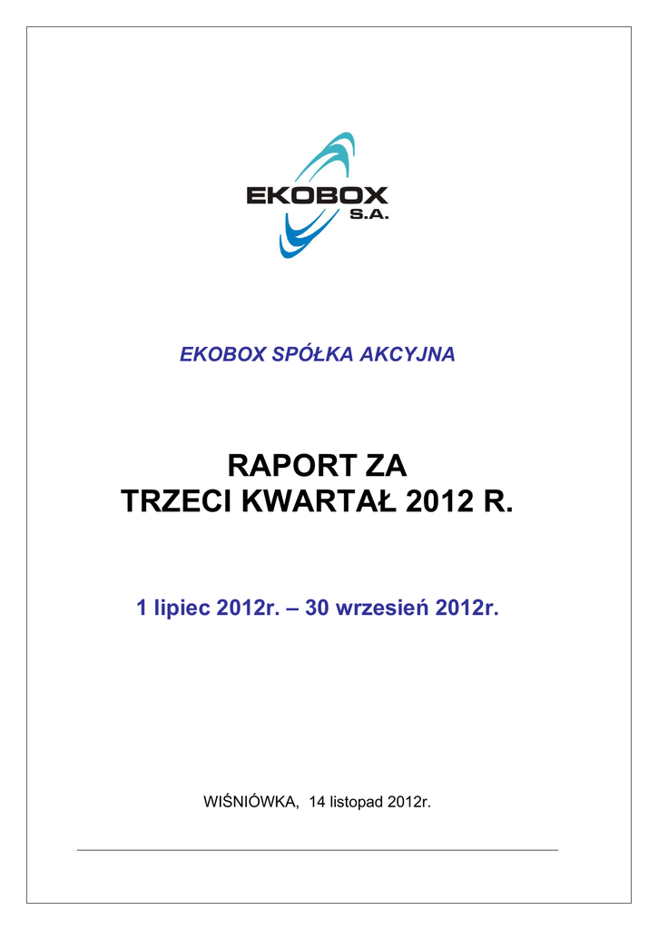 EKOBOX S.A. raport za III kwartał 2012 roku