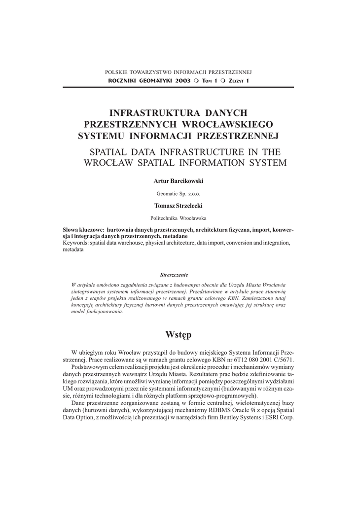 infrastruktura danych przestrzennych wrocławskiego systemu