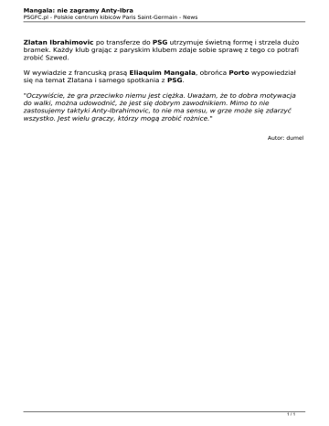 Mangala: nie zagramy Anty-Ibra