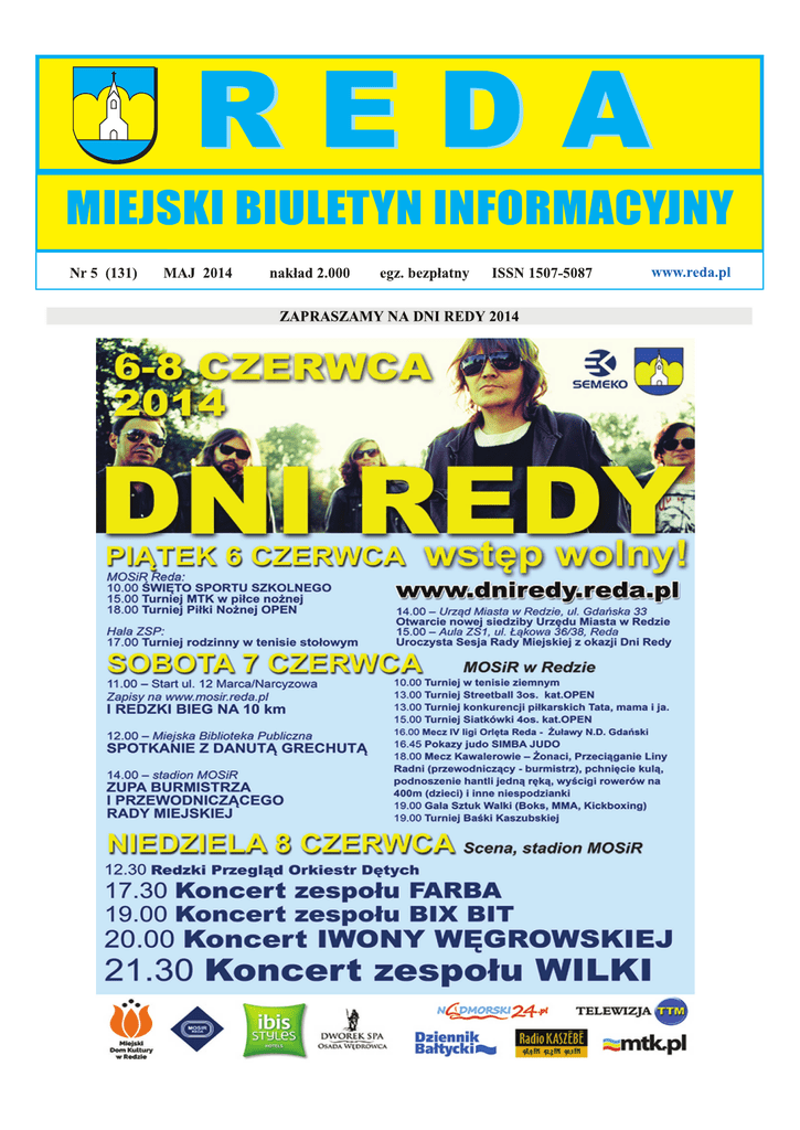 2 REDA – MIEJSKI BIULETYN INFORMACYJNY MAJ 2014 XV-LECIE SZKOŁY PODSTAWOWEJ NR 6 W REDZIE Społeczność szkolna Szkoły Podstawowej nr 6 w Redzie im. Jana Pawła II, 16 maja obchodziła 15 lecie szkoły. W programie obchodów było podsumowanie Miejskiego Konkursu Wiedzy o Janie Pawle II, przedstawienie teatralne dzieci uczęszczających do SP 6, oraz odsłonięcie edukacyjnego labiryntu. Dyrektor szkoły Mirosław Rożyński w imieniu swoim i grona pedagogicznego szkoły podziękował osobom, które przez miniony czas wspomagały działania szkoły. Z okazji jubileuszu na ręce dyrektora zostały złożone życzenia dalszego rozwoju szkoły i osiągnięć pedagogicznych. Tekst i foto: Michał Kaczmarek INDIAŃSKA PRZYGODA W BIBLIOTECE Z okazji tegorocznych obchodów Tygodnia Bibliotek, Miejska Biblioteka Publiczna w Redzie zorganizowała cykl zajęć dla najmłodszych pod hasłem „Indiańska przygoda w Bibliotece”. Dzieci z redzkich przedszkoli poznały kulturę i obyczaje Indian, oglądały zgromadzone w czytelni eksponaty – były pióropusze, łuki, łapacze snów, tipi i tomahawki. Dużo radości sprawiło maluchom używanie swoich nowych indiańskich imion, które przybrali podczas inicjacji na członków plemienia. Punktem kulminacyjnym imprezy były odwiedziny Wielkiego Wodza – Pędzącego Wilka. Zajęcia obfitowały w różnego rodzaj zabawy ruchowe, takie jak indiańskie tańce wokół ogniska, czy polowanie na bizony. Po radosnych indiańskich zabawach dzieci złożyły przysięgę książce i zostały pasowane na czytelników. Uroczystego pasowania dokonała Pani Teresa Kania Zastępca Burmistrza Redy. Indiańska przygoda dostarczyła przedszkolakom wielu ciekawych wrażeń. Dzieci opuściły bibliotekę z upominkami i uśmiechami na twarzy. Tekst H. Matuszak UWAGA – ZMIANA GŁÓWNEJ SIEDZIBY URZĘDU MIASTA REDY Informujemy, że z dniem 9 czerwca główna siedziba Urzędu Miasta Redy będzie się znajdować w budynku przy ulicy Gdańskiej 33, gdzie zostaną przeniesione wszystkie referaty, oprócz Referatu Spraw Obywatelskich oraz Referatu Gospodarki Komunalnej (śmieci), a także części Referatu Finansowego (podatki) i stanowiska ds. Bezpieczeństwa i Zarządzania Kryzysowego, które pozostaną w starym budynku przy ulicy Puckiej 9. Telefony pozostają bez zmian. MAJ 2014 REDA – MIEJSKI BIULETYN INFORMACYJNY INFORMACJE MOPS REDA Miejski Ośrodek Pomocy Społecznej w Redzie Sekcja Świadczeń Rodzinnych Informuje: dot: opiekunów osób dorosłych niepełnosprawnych, którzy utracili świadczenie pielęgnacyjne na mocy niekonstytucyjnego przepisu. W dniu 4 kwietnia 2014 r. została uchwalona ustawa o ustaleniu i wypłacie zasiłków dla opiekunów. (Dz.U. z dnia 30 kwietnia 2014 r. poz. 567) Przedmiotowa ustawa określa warunki nabywania oraz zasady ustalania i wypłacania zasiłków dla opiekunów osobom, które utraciły prawo do świadczenia pielęgnacyjnego z dniem 1 lipca 2013 r. w związku z wygaśnięciem z mocy prawa decyzji przyznającej prawo do świadczenia pielęgnacyjnego. Zasiłek dla opiekuna, w kwocie 520 zł, będzie przysługiwał osobie, jeżeli decyzja o przyznaniu jej prawa do świadczenia pielęgnacyjnego wygasła z mocy prawa z dniem 1 lipca 2013 r., na podstawie uznanego za niekonstytucyjny art. 11 ust. 3 ustawy z dnia 7 grudnia 2012 r. o zmianie ustawy o świadczeniach rodzinnych oraz niektórych innych ustaw. Zasiłek dla opiekuna przysługiwać będzie: 1) za okresy od dnia 1 lipca 2013 r. do dnia poprzedzającego dzień wejścia w życie ustawy, w których osoba spełniała warunki do otrzymania świadczenia pielęgnacyjnego określone w ustawie o świadczeniach w brzmieniu obowiązującym w dniu 31 grudnia 2012 r. (wraz z odsetkami), 2) od dnia wejścia w życie ustawy, jeżeli osoba spełnia warunki do otrzymania świadczenia pielęgnacyjnego określone w ustawie z dnia 28 listopada 2003 r. o świadczeniach rodzinnych w brzmieniu obowiązującym w dniu 31 grudnia 2012 r. Zasiłek dla opiekuna nie będzie przysługiwał za okresy, w których: a) osobie ubiegającej się o zasiłek dla opiekuna zostało ustalone prawo do specjalnego zasiłku opiekuńczego lub świadczenia pielęgnacyjnego lub b) na osobę wymagającą opieki innej osobie zostało ustalone prawo do specjalnego zasiłku opiekuńczego lub świadczenia pielęgnacyjnego. Zarejestrowanie w powiatowym urzędzie pracy jako osoba poszukująca pracy lub posiadanie statusu bezrobotnego nie ma wpływu na uprawnienie do zasiłku dla opiekuna w okresie od dnia 1 lipca 2013 r. do dnia złożenia wniosku o ustalenie zasiłku dla opiekuna. Postępowanie w sprawie ustalenia prawa do zasiłku dla opiekuna organ ustalający prawo do świadczeń pielęgnacyjnych wszczynać będzie na wniosek osoby ubiegającej się o zasiłek dla opiekuna. Wniosek będzie można składać maksymalnie w terminie 4 miesięcy od dnia wejścia w życie ustawy. Prawo do zasiłku dla opiekuna ustalane będzie na czas nieokreślony, chyba że orzeczenie o niepełnosprawności lub orzeczenie o stopniu niepełnosprawności zostało wydane na czas określony. Przy ustalaniu prawa do zasiłku dla opiekuna, organ ustalający prawo będzie się zwracał do kierownika ośrodka pomocy społecznej o przeprowadzenie rodzinnego wywiadu środowiskowego w miejscu sprawowania opieki, w celu potwierdzenia faktu sprawowania opieki przez osobę ubiegającą się o zasiłek dla opiekuna. Aktualizacja wywiadu przeprowadzana będzie co 6 miesięcy. Ustawa nakłada na organy, które wypłacały świadczenia pielęgnacyjne do dnia 30 czerwca 2013 r., obowiązek poinformowania - w terminie 14 dni od dnia wejścia w życie ustawy - osoby, którym przysługiwało świadczenie pielęgnacyjne do dnia 30 czerwca 2013 r., o możliwości złożenia wniosku o przyznanie zasiłku dla opiekuna oraz o warunkach nabywania do niego prawa. Ustawa z dnia 4 kwietnia 2014 r. o ustaleniu i wypłacie zasiłków dla opiekunów została podpisana przez 