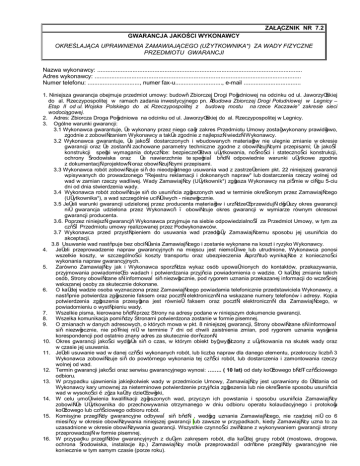 ZAŁĄCZNIK NR 7.2 GWARANCJA JAKOŚCI WYKONAWCY