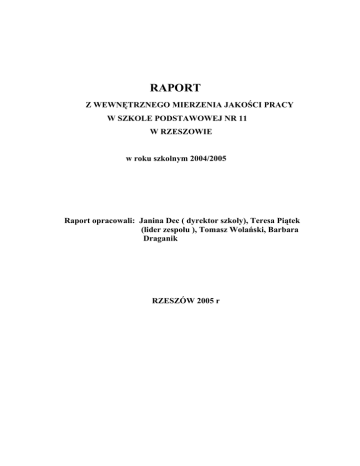 raport z wewnętrznego mierzenia jakości pracy w sp 11.