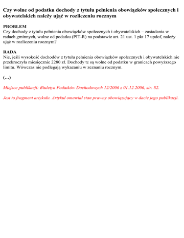 &]\ZROQHRGSRGDWNXGRFKRG\]W\WXáXSHáQLHQLDRERZLą]NyZVSRáHF]Q\FKL RE\ZDWHOVNLFKQDOHĪ\XMąüZUR]OLF]HQLXURF]Q\P 352%/(0 &]\GRFKRG\]W\WXáXSHáQLHQLDRERZLą]NyZVSRáHF]Q\FKLRE\ZDWHOVNLFK±]DVLDGDQLDZ UDGDFKJPLQQ\FKZROQHRGSRGDWNX3,75QDSRGVWDZLHDUWXVWSNWXSGRIQDOHĪ\ XMąüZUR]OLF]HQLXURF]Q\P" 5$'$ 1LHMHĞOLZ\VRNRĞüGRFKRGyZ]W\WXáXSHáQLHQLDRERZLą]NyZVSRáHF]Q\FKLRE\ZDWHOVNLFKQLH SU]HNURF]\áDPLHVLĊF]QLH]á'RFKRG\WHVąZROQHRGSRGDWNXZJUDQLFDFKSRZ\ĪV]HJR OLPLWX:yZF]DVQLHSRGOHJDMąZ\ND]DQLXZ]H]QDQLXURF]Q\P « 0LHMVFHSXEOLNDFML%LXOHW\Q3RGDWNyZ'RFKRGRZ\FK]VWU -HVWWRIUDJPHQWDUW\NXáX$UW\NXáRPDZLDáVWDQSUDZQ\RERZLą]XMąF\ZGDFLHMHJRSXEOLNDFML