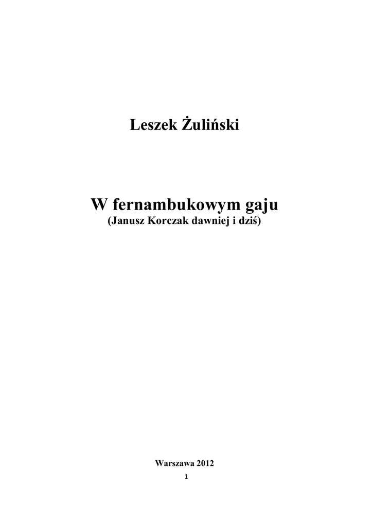 Leszek Żuliński W fernambukowym gaju (Janusz Korczak dawniej i dziś) Warszawa 2012 1 © Copyright by Biuro Rzecznika Praw Dziecka, Warszawa 2013 © Copyright by Leszek Żuliński, 2013 Konsultant merytoryczny: Marta Ciesielska Plik niniejszy zawiera tekst, który można także przeczytać pod linkiem http://2012korczak.pl/eseje Tekst w formie książkowej nie ukazał się 2 Lekarz czy pedagog? W roku 2012 minęła 70. rocznica męczeńskiej śmierci Janusza Korczaka i jego podopiecznych w Treblince oraz setna rocznica założenia przez Starego Doktora Domu Sierot przy ulicy Krochmalnej w Warszawie. Dlatego też z inicjatywy Rzecznika Praw Dziecka, Pana Marka Michalaka, rok 2012 został ustanowiony przez Sejm Rzeczypospolitej Polskiej Rokiem Janusza Korczaka. Zapewne będzie ten rok dobrą okazją do przypomnienia pięknej postaci opiekuna i wychowawcy, który całe życie poświęcił dzieciom, o których zresztą sam mówił, że nie ma dzieci – są ludzie. Ta idea warta jest nie tylko przypominania i powtarzania, lecz także kontynuacji, utrwalania i realnego wcielania w życie – od ideałów i nawyków mentalnych począwszy, a na systemie prawnym skończywszy... * Janusz Korczak był jedną z najpiękniejszych i zarazem najtragiczniejszych postaci w polskiej historii. Ale to nie tragiczny kres jego życia zadecydował o tym pięknie. Ono tkwiło w jego pracy, mądrości, idei dobra, jaka mu przyświecała i odwadze jej propagowania oraz wdrażania w czasach, kiedy jeszcze ani rodzice, ani pedagodzy nie zdawali sobie sprawy, kim jest dziecko, jak trzeba je traktować i wychowywać, jakie prawa powinny je chronić oraz zapewniać mu prawidłowy rozwój w poszanowaniu jego godności. Dlatego ta opowieść o Januszu Korczaku będzie opowiadać przede wszystkim o pracy wielkiego pedagoga i wychowawcy, prekursora „nowej świadomości”, która toruje sobie drogę ku spełnieniu, aczkolwiek jej końca jeszcze nie widać, zwłaszcza gdy uświadomimy sobie różnice kulturowe i socjalno-bytowe, jakie wciąż dzielą ludzi i społeczeństwa. Cofnijmy się do XIV wieku i przypomnijmy sobie historię opisaną przez braci Grimm. W dolnosaksońskim miasteczku Hameln zapanowała epidemia dżumy roznoszonej przez szczury. Mieszkańcy wynajęli szczurołapa, który – grając na piszczałce – wyprowadził gryzonie poza mury. Nie chcieli oni jednak zapłacić umówionej ceny szczurołapowi, więc ten wyprowadził z miasta, w akcie zemsty, także dzieci. Zostały one po jakimś czasie odnalezione w zbiorowej mogile, martwe. Historycy – jak zawsze nie wierzący legendzie – ukuli kilka przypuszczeń. Między innymi i takie – wielce prawdopodobne – że dzieci zarażały się chorobą najszybciej i najłatwiej, więc by zatrzymać epidemię, rodzice sami wyprowadzili je za miasto i pogrzebali żywcem. Znamy też inną opowieść. W roku 1109 król Henryk V oblegał miasto Głogów. Aby wymusić na jego obrońcach kapitulację, kazał przywiązać do machin oblężniczych zakładników, pośród których większość to były dzieci. Obrońcy Głogowa nie zawahali się mierzyć z łuków do własnych synów, by ocalić miasto. 3 Te średniowieczne przekazy, zamierzchłe i drastyczne, choćby były tylko legendami, uświadamiają nam ówczesny los dzieci, kruchość i niską cenę ich życia. Dziś jest to wszystko niewyobrażalne – dzieci pierwsze się karmi, pierwsze leczy, pierwsze chroni przed jakimkolwiek niebezpieczeństwem. Ewolucja tej sytuacji trwała wieki i można bez przesady uznać, iż doktor Janusz Korczak wprowadził w nią swoisty „przewrót kopernikański”, choć jego dzieło jeszcze nie jest zakończone, nie uwieńczone pełnym zwycięstwem. Kim był? Janusz Korczak, czyli Henryk Goldszmit, urodził się 22 lipca 1878 roku (lub 1879, co niejasne z powodu zaniedbań metrykalnych rodziców) w Warszawie, w spolonizowanej, inteligenckiej rodzinie żydowskiej. Jego dziadek był lekarzem, a ojciec adwokatem. Dzieciństwo i pierwszą młodość Korczak spędził w najstarszej części Warszawy, gawrze stołecznej inteligencji – na Starym Mieście. Goldszmitowie często zmieniali mieszkania: Henryk wychowywał się na ulicy Bielańskiej, Krakowskim Przedmieściu, Miodowej, Nowosenatorskiej i na Placu Krasińskich. Do swej pierwszej szkoły chodził na ulicę Freta, a na drugą stronę Wisły jeździł do gimnazjum, które do dzisiaj istnieje (jako Liceum im. Władysława IV), jest znane i cenione. W wieku 20 lat podjął studia medyczne na Uniwersytecie Warszawskim, wówczas zwanym Cesarskim. Podczas pobytu w Szwajcarii, w roku 1899, szczególnie interesował się ideą Johanna Heinricha Pestalozziego (1746-1827), pedagoga i twórcy nowoczesnej wówczas teorii nauczania początkowego. Wrócimy jeszcze do tej postaci, na razie zatrzymajmy się w latach młodości Korczaka, który jeszcze jako student medycyny podjął pracę w Szpitalu dla Dzieci im. Bersonów i Baumanów i zaczął angażować się w leczenie ludzi biednych, co czynił jako woluntariusz. Zbliżył się również do Samuela Goldflama (1852-1932), także lekarza, ale z zapałem i poświęceniem upowszechniającego i realizującego działalność społeczną na rzecz ubogich i niesprawnych. W roku 1905 Korczak otrzymał dyplom lekarski i... znalazł się na froncie wojny rosyjsko-japońskiej aż na Dalekim Wschodzie; na szczęście cały i zdrowy stosunkowo szybko powrócił do pracy w szpitalu Bersonów. W dwa lata potem wyjechał do Berlina, gdzie dokształcał się intensywnie i – co ważne! – zapoznawał się z niemieckim systemem zakładów wychowawczych dla dzieci i młodzieży. W roku 1914 wybuchła następna wojna, wielka i straszna... Doktor Korczak został ordynatorem szpitala wojskowego na zapleczu frontu ukraińskiego, podjął także pracę w przytułkach dla dzieci pod Kijowem, a potem w samym Kijowie, w podobnym zakładzie, który prowadziła Maria Rogowska-Falska. „Wojenna znajomość