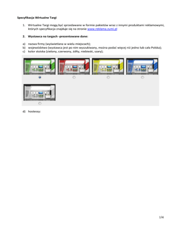 Specyfikacja Wirtualne Targi 1. Wirtualne Targi mogą byd