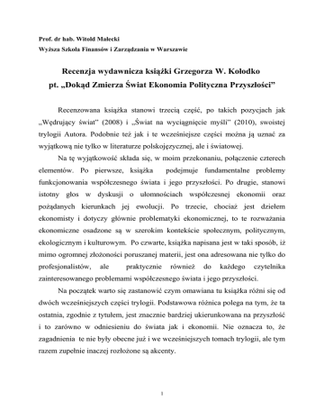 Recenzja wydawnicza książki Grzegorza W. Kołodko pt. „Dokąd