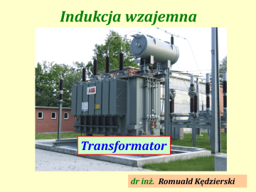 Indukcja wzajemna Transformator dr inż. Romuald Kędzierski Do czego służy transformator? Jest to urządzenie (zwane też maszyną elektryczną), które wykorzystując zjawisko indukcji elektromagnetycznej pozwala na zmianę wartości napięcia elektrycznego prądu przemiennego oraz jego natężenia. Jest to urządzenie służące do przenoszenia energii elektrycznej prądu przemiennego – z wykorzystaniem zjawiska indukcji elektromagnetycznej – z jednego obwodu elektrycznego do drugiego, przy czym nie ulega zmianie pierwotna częstotliwość prądu, natomiast zwykle zmieniane jest jego napięcie elektryczne. Jego wynalezienie było jednym z głównych powodów tego, że w instalacjach elektrycznych wykorzystuje się prąd przemienny zamiast prądu stałego ! Zasada działania transformatora Założenie wyjściowe: dwie zwojnice (cewki) – o różnych liczbach zwojów N są nawinięte na wspólnym rdzeniu ferromagnetycznym mają takie same pole powierzchni przekroju poprzecznego S Jedna ze zwojnic (zwana wtedy uzwojeniem pierwotnym) jest podłączona do źródła przemiennego napięcia elektrycznego. Uzwojenie wtórne Przemienne napięcie zasilające obwód pierwotny Płynie w nim prąd przemienny Powstaje zmienny strumień magnetyczny, który przenika także przez drugą zwojnicę (obwód wtórny) Uzwojenie pierwotne W obwodzie wtórnym – zgodnie z prawem indukcji Faradaya – powstaje SEM indukcji Możliwe stany pracy transformatora Stan (bieg) jałowy transformatora: Uzwojenie pierwotne jest podłączone do źródła napięcia przemiennego, natomiast uzwojenie wtórne jest otwarte (nie podłączone do odbiornika prądu) W obwodzie wtórnym nie płynie prąd elektryczny! Stan (bieg) obciążony transformatora: Uzwojenie pierwotne jest podłączone do źródła napięcia przemiennego, natomiast uzwojenie wtórne jest podłączone do odbiornika prądu o pewnym oporze elektrycznym R. Założenie dodatkowe: Wszelkie opory elektryczne* występujące w rozpatrywanym układzie zwojnic są na tyle małe, że można je zaniedbać! Wartość SEM indukcji w uzwojeniu pierwotnym jest równa (w przybliżeniu) napięciu zasilającym obwód pierwotny. * Oprócz oporów tzw. czynnych R, w obwodach prądu przemiennego występują też opory elektryczne związane z pojemnością elektryczną tych obwodów, jak i ich indukcyjnością! Uwaga: W rozpatrywanym przypadku można przyjąć, że strumień pola magnetycznego jest taki sam w dowolnym przekroju rdzenia, na którym nawinięte są zwojnice! Wniosek: Przez każdy ze zwojów – tak uzwojenia pierwotnego, jak i wtórnego – przenika taki sam strumień magnetyczny W każdym ze zwojów obu uzwojeń powstaje taka sama co do wartości SEM indukcji! Jeżeli chwilowa wartość strumienia magnetycznego – przenikającego przez każdą ze zwojnic – wynosi to w każdym ze zwojów powstanie SEM o wartości: Stąd też, w każdej ze zwojnic – o pewnej liczbie zwojów N – powstanie SEM indukcji o wartości: Po podzieleniu obu równań stronami mamy: Jeżeli opór uzwojeń jest pomijalnie mały, a obwód wtórny jest rozwarty (bieg jałowy: nie płynie w nim prąd), to: Stąd: Zależność ta dotyczy zarówno wartości chwilowych napięć, jak i maksymalnych czy skutecznych! Uwaga: Stosunek: Nazywa się przekładnią transformatora (współczynnikiem transformacji). Wnioski: transformator podwyższa napięcie elektryczne transformator obniża napięcie elektryczne Czy podczas pracy transformatora występują straty energii? Są to tzw. : Oczywiście! straty w żelazie straty w miedzi mają miejsce w rdzeniu transformatora mają miejsce w uzwojeniach transformatora wynikają z powstania tzw. prądów wirowych oraz histerezy magnetycznej podczas przemagnesowaniu rdzenia Sprawność transformatora wynikają z tego, że uzwojenia mają pewne niezerowe opory elektryczne stosunek mocy w obwodzie wtórnym do mocy pobieranej w obwodzie pierwotnym Uwaga: We współczesnych transformatorach, straty mocy zazwyczaj nie przekraczają 3%! Dlatego można przyjąć (w przybliżeniu), że: Stąd: Zatem: Wniosek: Jeżeli transformator, w którym straty energii można pominąć, podwyższa „k” razy napięcie elektryczne, to także „k” razy obniża natężenie prądu elektrycznego. Zadanie 1. Dany jest transformator, w którym liczba zwojów uzwojenia pierwotnego wynosi 600, natomiast liczba zwojów w uzwojeniu wtórnym jest o 450 mniejsza. Straty energii w transformatorze można pominąć. Napięcie zasilające (prądu sinusoidalnie zmiennego) na wartość skuteczną 230 V, natomiast moc wydzielona w odbiorniku podłączonym do obwodu wtórnego wynosiła 920 W. Oblicz wartość maksymalną natężenia płynącego przez odbiornik podłączony do obwodu wtórnego. Zadanie 2. Oblicz sprawność transformatora o przekładni 10, jeżeli natężenie skuteczne prądu w obwodzie pierwotnym wynosi 10 amperów, natomiast w uzwojeniu wtórnym 600 miliamperów. Zadanie 3. Transformator o sprawności 95% podwyższa napięcie od wartości skutecznej 220 V do 1100 V. Oblicz amplitudę natężenia prądu w uzwojeniu pierwotnym, jeżeli w uzwojeniu płynie prąd o natężeniu skutecznym 0,2 ampera. Rozszerzenie wiadomości, poza obowiązujący obecnie zakres profilu rozszerzonego Uwaga: W obwodach prądu przemiennego, oprócz oporu czynnego R związanego z jego oporem omowym, występują również następujące opory bierne: Opór indukcyjny (induktancja): Opór pojemnościwy (kapacytancja): Opór całkowity (zawada) obwodu składającego się z szeregowo połączonych elementów o pewnym oporze czynnym R, indukcyjności L i pojemności elektrycznej C (tzw. obwód RLC), dana jest zależnością: Wtedy wartość skuteczna prądu przemiennego płynącego w takim obwodzie dana jest zależnością: W obwodach RLC przebiegi zmian napięcia elektrycznego i natężenia prądu są przesunięte w fazie o kąt, którego tangens można wyrazić wzorem: Analiza szczególnych przypadków